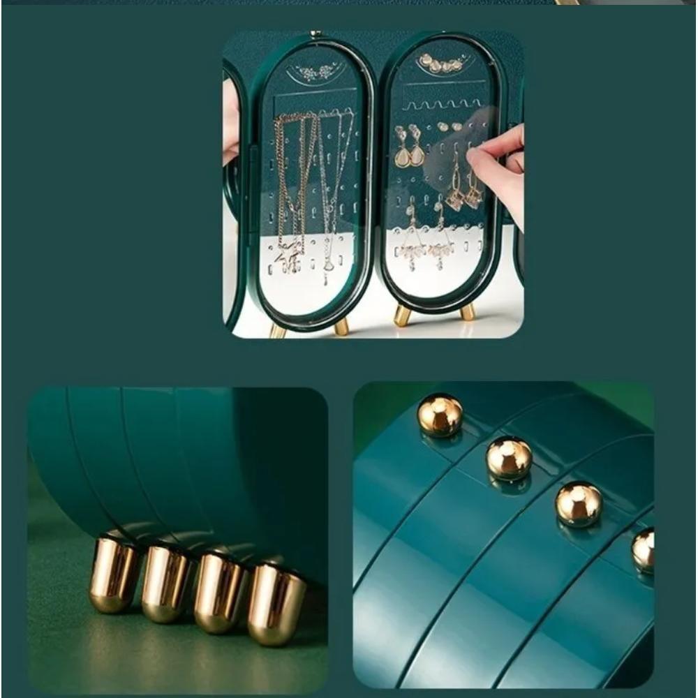 Porta Joias Dobravel Espelho 3 Compartimentos Acrilico Organizador Caixa Armazenadora