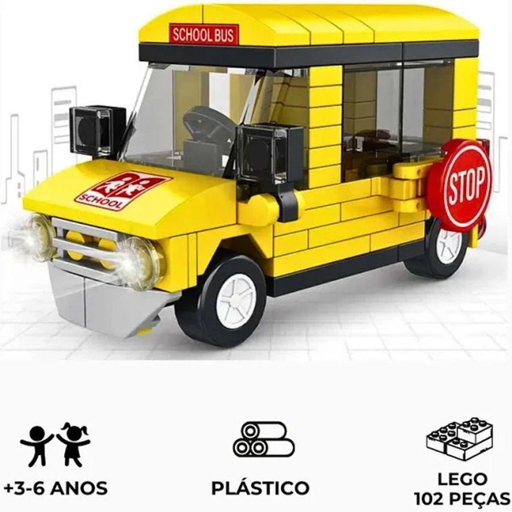 Brinquedo Blocos De Construção Carro ônibus EscolarEste brinquedo de blocos de montar é a escolha perfeita para crianças que adoram brincar e aprender ao mesmo tempo. Feito de plástico resistente, ele faz parte de uma linha de carros no estilo LEGO que imitam veículos de profissões essenciais, como ambulância, caminhão de bombeiro e ônibus escolar. O carro de montar é ideal para estimular a imaginação, a coordenação motora e o desenvolvimento cognitivo da criança, proporcionando horas de diversão.Características principais:- Carro de montar inspirado em veículos de profissões (ambulância, bombeiro, ônibus escolar).- Ideal para crianças acima de 3 anos.- Feito de plástico de alta qualidade, durável e seguro para o uso infantil.- Estimula a criatividade, habilidades motoras e a construção.- Design fácil de montar e divertido.- Não possui Led.- O brinquedo não é a base de pilhas e nem outro tipo de bateria.- As peça possui bordas arredondadas evitando possíveis machucados nas crianças.Conteúdo da caixa:- Quantidade de peças: 102 peças- 1 manual de instruções para montagem.Especificações:- Nome : Ônibus Escolar- Material: Plástico resistente.- Idade recomendada: A partir de 3 anos.- Produto desmontado, pronto para ser montado com a ajuda do manual inclusivo.Este carro de montar é uma peça essencial para complementar a brincadeira da criança, incentivando a criação e o aprendizado sobre profissões de forma divertida. Perfeito para presentear ou como parte de uma coleção de carros de profissão.Alguns produtos podem apresentar variações na tonalidade da cor, detalhes e características menores, mas isso não afeta a funcionalidade ou a troca do item.