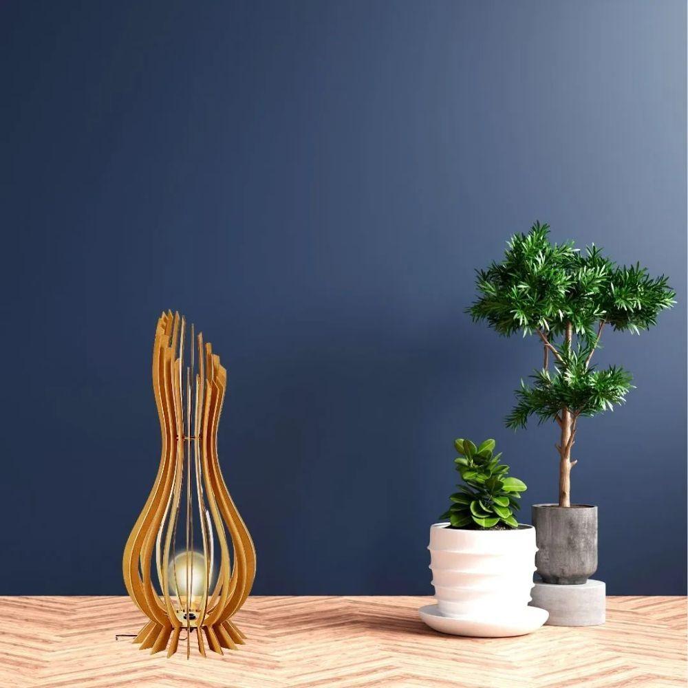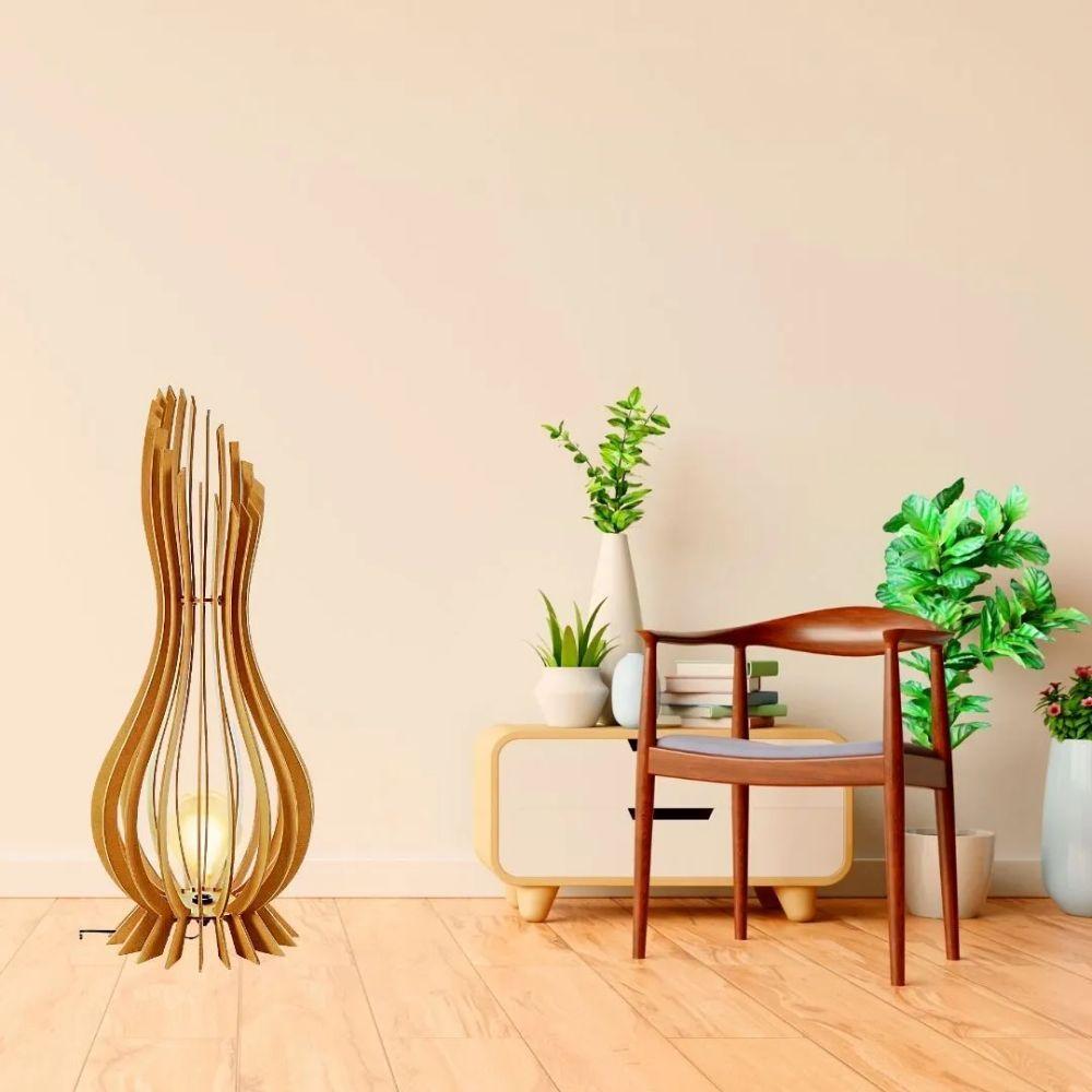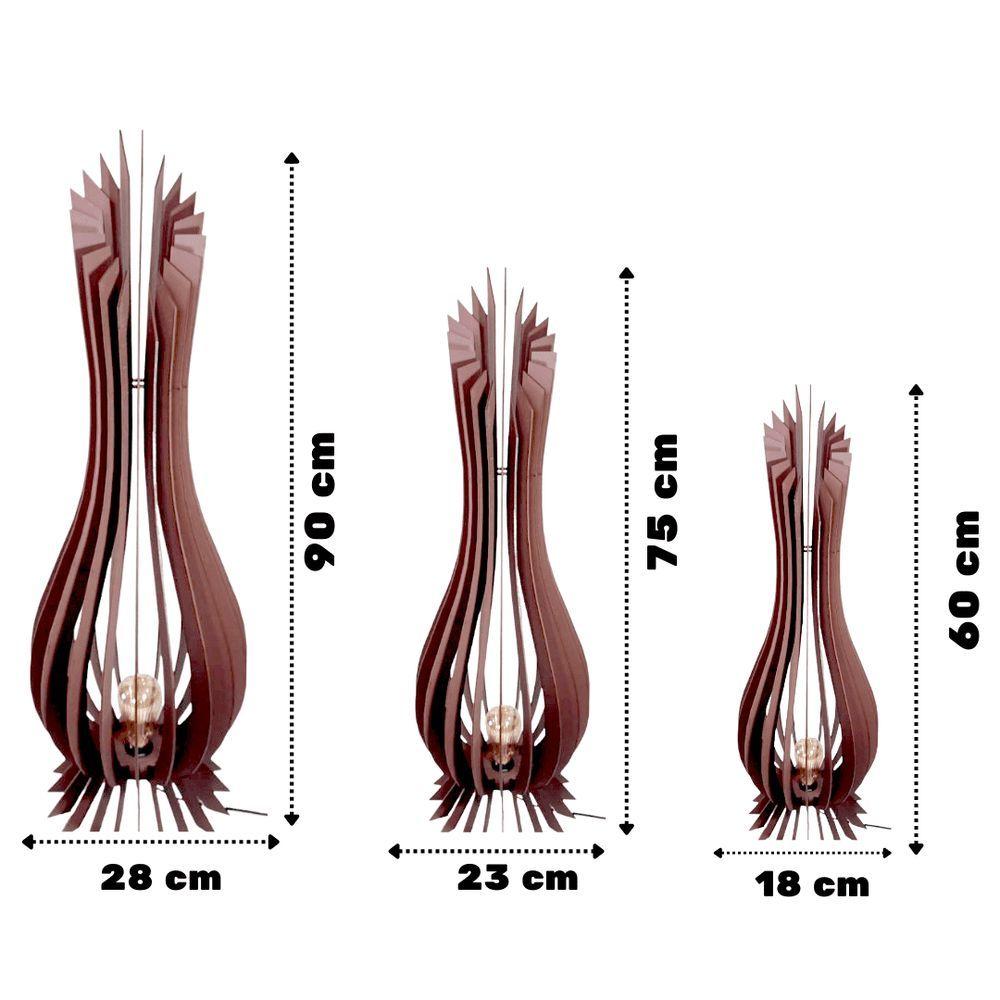 Abajur Grande De Chão Ana Maria Mdf Luminária Marrom Kit com 3 90x28cm, 75x23cm E 60x18cm