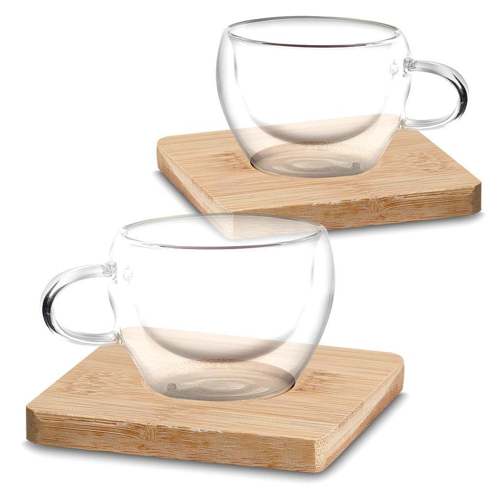 Conjunto Clássico 2 Xícaras De Café Com Base De Bambu