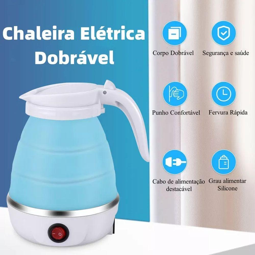 Chaleira Elétrica Dobrável 110vMaterial saudável e durável:Chaleira portátil é feita de silicone de qualidade alimentar e placa de aquecimento de aço inoxidável.É seguro, inodoro e saudável de usar. A alta dureza, arranhões e resistência ao desgaste tornam uma chaleira elétrica de acampamento durável.Chaleira elétrica dobrável: Chaleira de viagem é portátil e leve, dobrável rápida em 3 segundos, muito conveniente para sua viagem e camping, o que economiza muito espaço em seu pacote de viagem.Fervura segura e rápida: Design de um botão, basta pressionar o botão de chaleira itinerante, a água será fervida em 5 minutos. A água dispara automaticamente após ferver, desligue a energia ou desconecte a energia após a água ferver.Dicas: O cabo da tomada é destacável e você pode separar o cabo de alimentação do corpo da chaleira quando não estiver usando. Aguarde até a chaleira portátil arrefecer antes de a dobrar ou embalar.EspecificaçõesCor: AzulMaterial: Silicone do produto comestível, aço inoxidável 304Antes de dobrar: 182 * 132 * 172 mmApós dobrar: 182 * 132 * 97 mmCapacidade: 600 mlTensão nominal: 110wPotência nominal: 600WFrequência nominal: 50HZInclui: Chaleira de viagem dobrável (600ml), cabo de alimentação, instruçãoCuidado:Devido a diferenças nos monitores e efeitos de iluminação, a cor real do item pode ser ligeiramente diferente da cor da imagem. Obrigado.Devido a diferentes métodos de medição, pode haver um erro de 1 ~ 3cm/0,39 ~ 1,18 polegadas.Garantia do vendedor: 1 meses