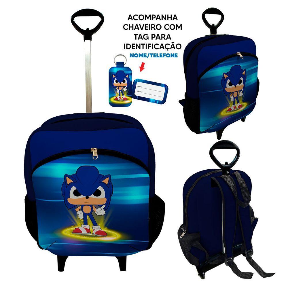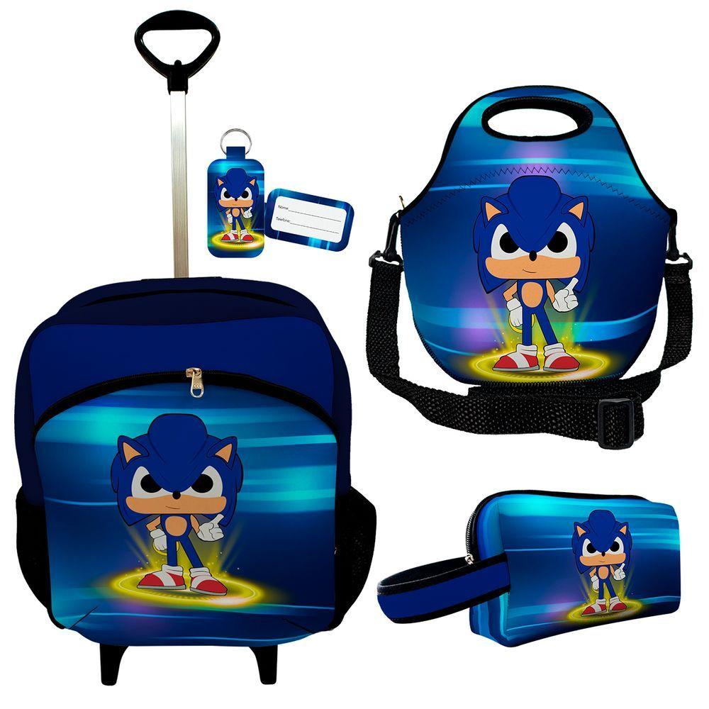 Kit Mochila Escolar Infantil Rodinhas Lancheira Estojo Isoprene Menino Sônico