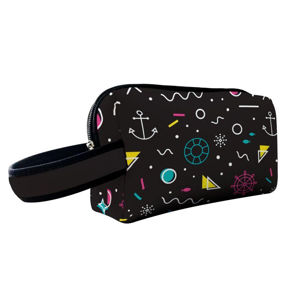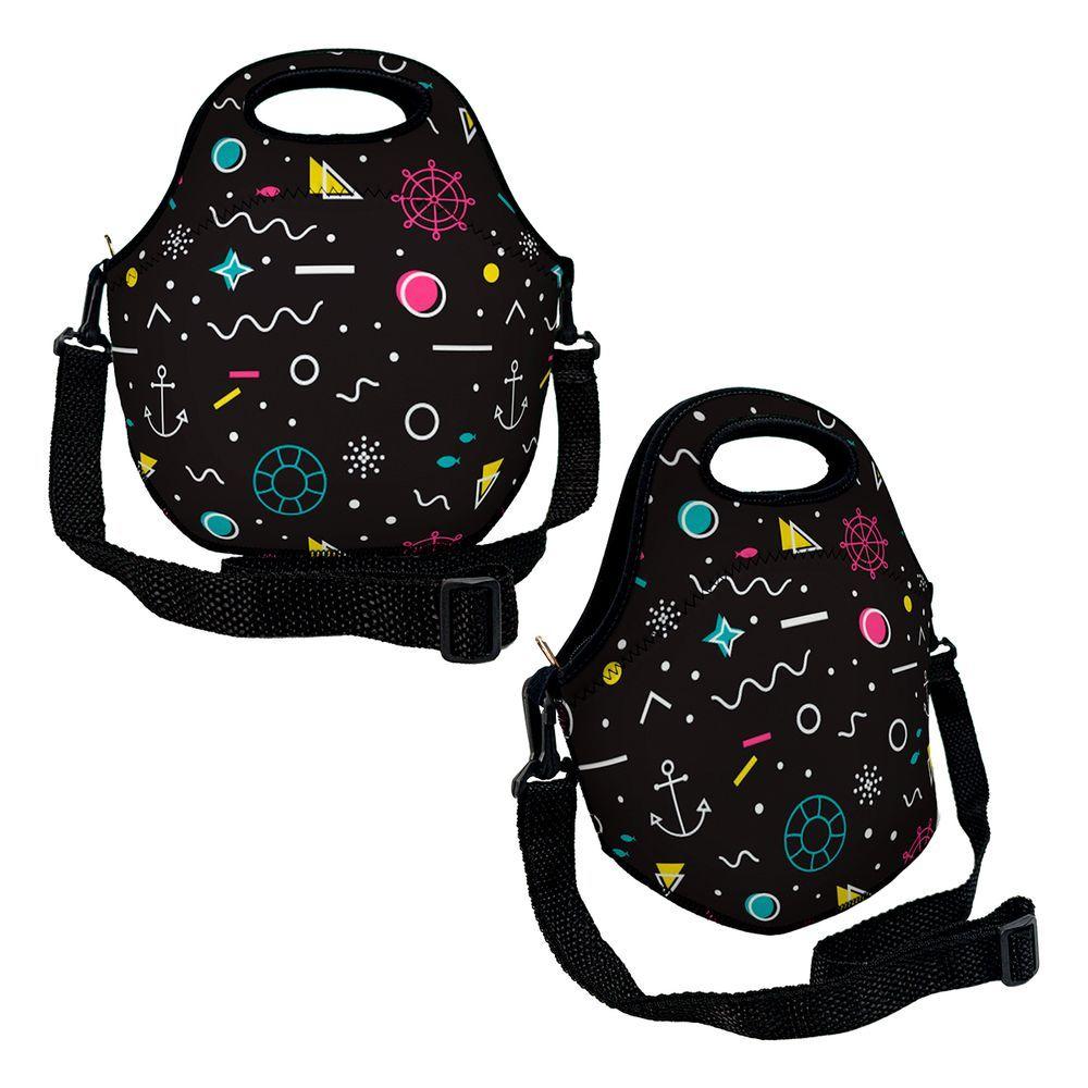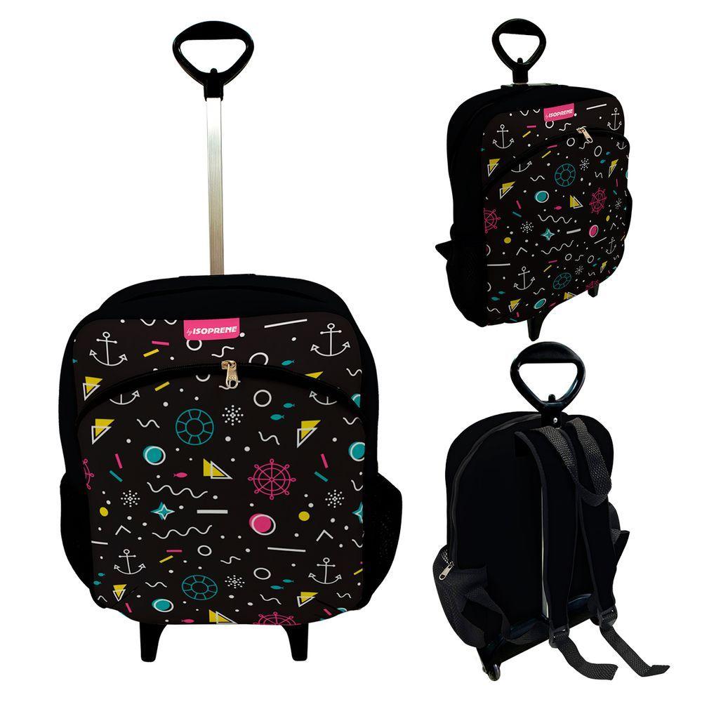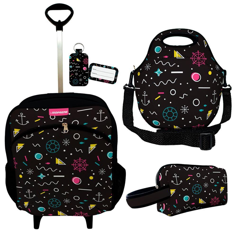 Kit Mochila Escolar Infantil Rodinhas Lancheira Estojo Isoprene Abstrato Black