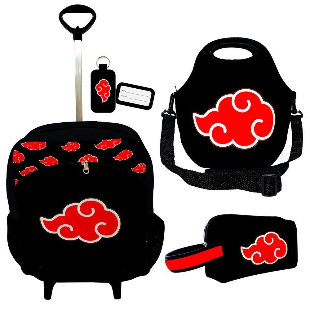 Kit Mochila Escolar Infantil Rodinhas Lancheira Estojo Isoprene Akatsuki Nuvem Grande