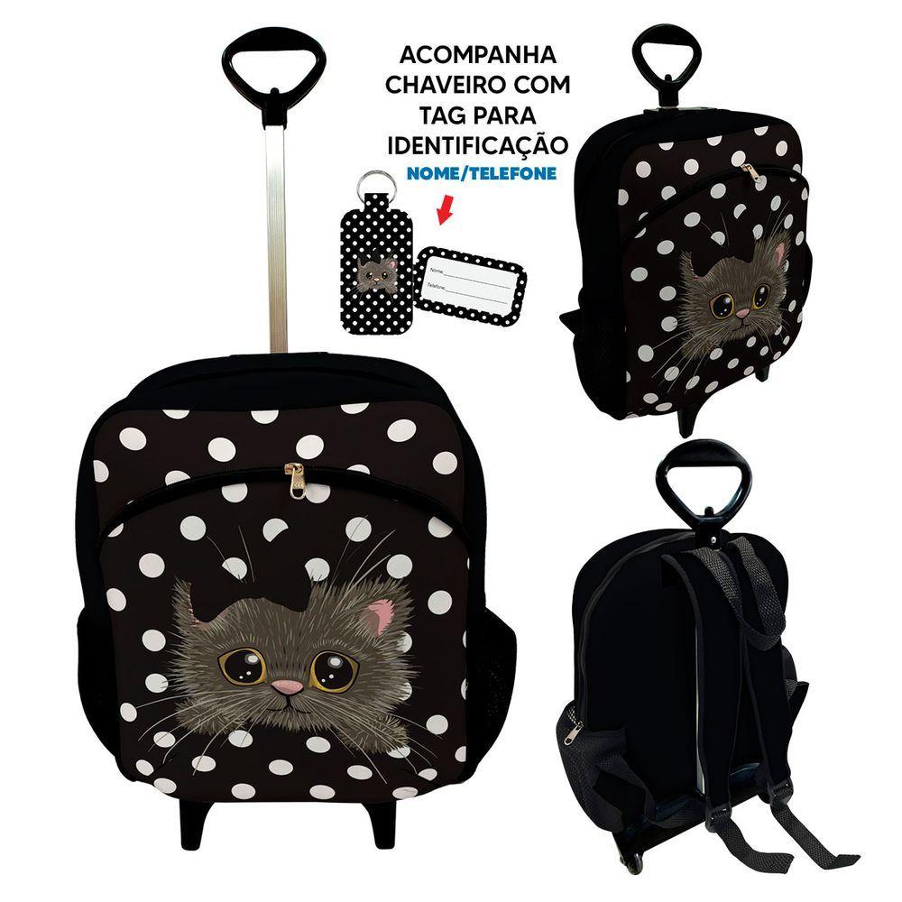 Kit Mochila Escolar Infantil Rodinhas Lancheira Estojo Isoprene Gatinho Poá