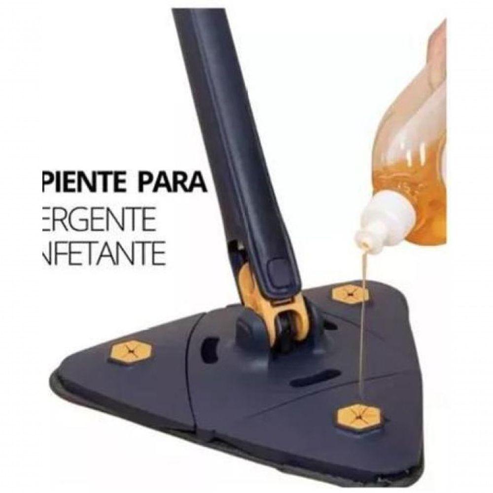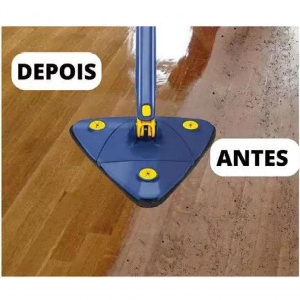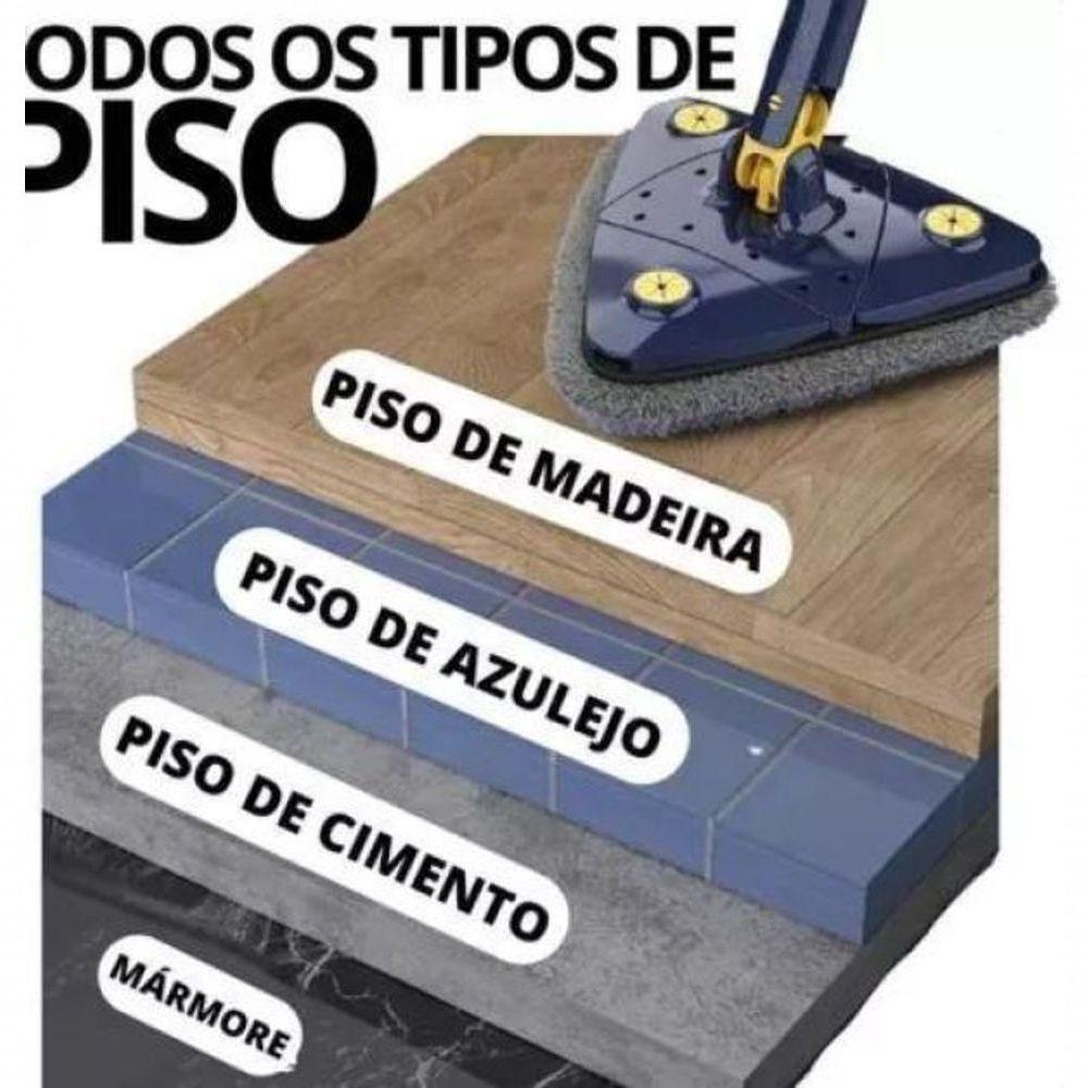 Kit Limpeza Profissional: Esfregão Triangular Rodo LimpadorKit de limpeza profissional: esfregão triangular rodo limpador giratório mopTorne a limpeza da sua casa mais fácil e prática com o mop esfregão 360 triangular sua exclusiva cabeça giratória de 360 graus e design triangular revolucionário permitem alcançar todos os cantos, eliminando com facilidade a poeira e sujeira em locais difíceis de acessar.Esqueça os métodos tradicionais e cansativos com a alça com catraca, você economiza tempo e esforço ao espremer a água da cabeça do esfregão, tornando a limpeza mais rápida e eficiente. Além disso, a extensão retrátil do esfregão de até 1,30m permite alcançar tetos, cantos e móveis sem dificuldades, poupando sua energia.Ideal para limpezas úmidas e secas.Modo de usar:Encaixe os 3 cabos de metais, para encaixar basta inserir o encaixe de cor amarelo no cabo de metal cinza, para identificar o lado correto de encaixe do cabo basta verificar se o cabo possui listras circulares na ponta, depois de localizar o lado correto de encaixar, realize este processo em todos os cabos.Para confirmar o encaixe basta verificar se o cabo por completo tem 3 encaixes amarelos com uma separação do cabo cinza, verifique se está totalmente encaixado e preso.Troca de refil:Quando for limpar ou trocar o refil primeiramente encontre as 3 pontas do triangulo do mop.É nessas 3 pontas onde o refil está encaixado, o mesmo encaixe serve para as 3 pontas.Retire cuidadosamente cada encaixe sem quebrar, quando retirar os três encaixes, você deverá retirar o encaixe que se encontra no meio do triangulo na parte de baixo.Logo após este processo poderá colocar o novo refil no triangulo, refazer o processo invertido e assim utilizar novamente.Especificação:- cor: azul.- material: microibra + pp + aço inoxidável.- pano de esfregão: 27 cm.- tamanho do esfregão: cerca de 130 cm x 7 cm.- fecha o esfregão por completo para torcer o pano.- com 01 refil de microfibra no mop.