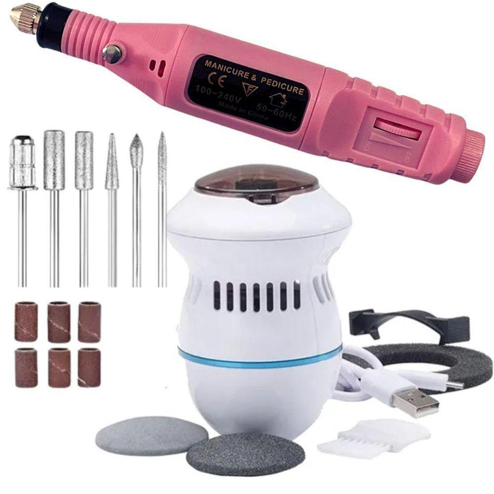Lixador Unha Elétrico + Lixador Pe Calos Kit 2 Ferramentas