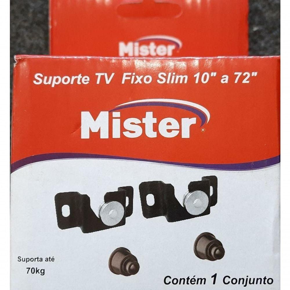 Suporte Tv Universal Fixo Slim 10 A 72Informações do produto:Suporte fixo para TVs e Monitores de Led, Lcd, 3D e Plasma com sistema de engate rápido. O Suporte universal foi desenvolvido para atender ao amplo mercado de TVs e Monitores de Led, Lcd, 3D e Plasma de 10 à 72 em sua vasta gama de modelos e fabricantes.Fácil e rápido de instalar, prático, seguro, moderno e não ocupa espaço.Destaca-se pela possibilidade de retirar e recolocar a TV / Monitor facilmente e de forma rápida nas partes fixas à superfície através das roldanas de alta resistência acopladas ao aparelho - engate rápido. Torna-se ideal também para ambientes externos como áreas de lazer, expositores e atividades comerciais onde haja a necessidade de se guardar o aparelho constantemente.Pode ser utilizado em paredes de alvenaria e superfícies variadas como painéis de madeira, painéis de MDF e drywall (desde que os parafusos e buchas sejam os adequados).Inclinação: Suporte fixoCompatibilidade : Polegadas: 10 à 72Padrão : a partir 75 x 75 mm / Limite final indeterminadoCarga Máxima: 60 KGDimensões Aproximadas:Altura: 4 cmLargura: 7,5 cmDistâncias da TV x Superfície Instalada:Padrão: 3,5 cmDados Técnicos:Cores Disponíveis: PretoMaterial: Aço carbono de primeira qualidadePintura: Pintura epóxi com alto padrão de acabamento e durabilidadePeso Bruto: 0,350 KG