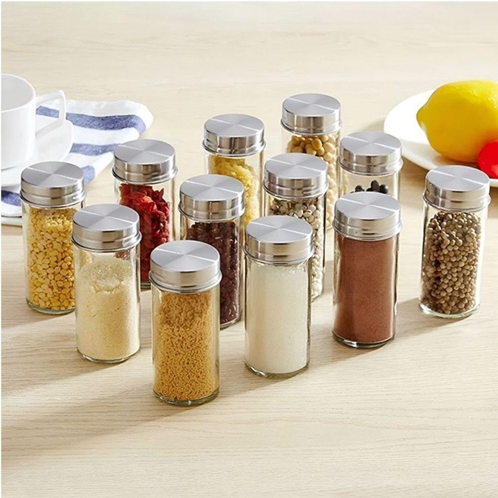 Porta Temperos Com Suporte Inox 12 Frascos De Vidro Com Base Rotatória Para Cozinha