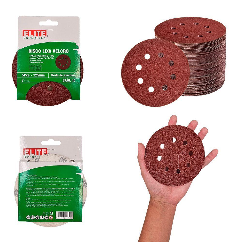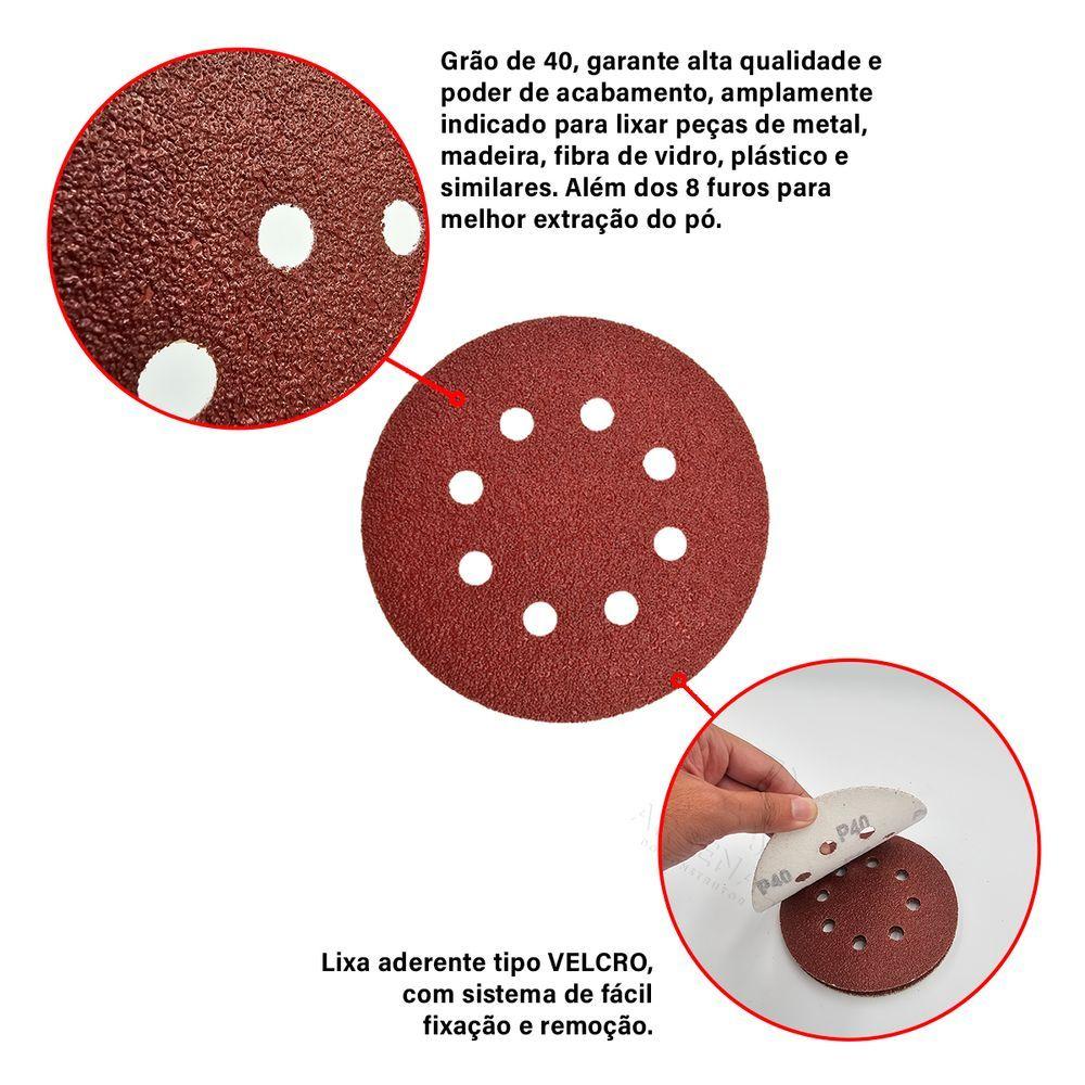 Kit 50 Discos De Lixa Velcro 125 X 22mm Grão 40