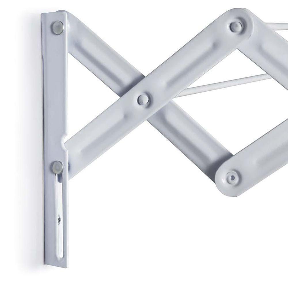 Varal Sanfonado 1,00 MPrincipais Características:- Perfeito para quem possui pouco espaço para secar suas roupas, o Varal Sanfonado 1,00m é fácil e prático de utilizar;- Pode ser fixado em uma parede na área externa de sua residência ou mesmo em uma área de serviço dentro de casa ou aparamento;- Resistente, é produzido em tubo de aço com acabamento em pintura epóxi a pó branco;- Pronto para usar, acompanha um kit com parafusos para fixar na parede;- Tem capacidade para acomodar até 10 Kg ou 7 m de roupas úmidas distribuídas uniformemente sobre suas varetas;- Leve, durável e discreto, enquanto não está sendo utilizado pode ficar recolhido, ocupando menos espaço e mantendo o ambiente mais organizado;- Praticidade que a Mor produz para você. Especificações Cor Branco Material Aço Pintado Capacidade 10Kg Dimensões 42 x 100 x 16cm Altura 110 cm Largura 10 cm Comprimento 2 cm Peso Bruto 1.5 kg