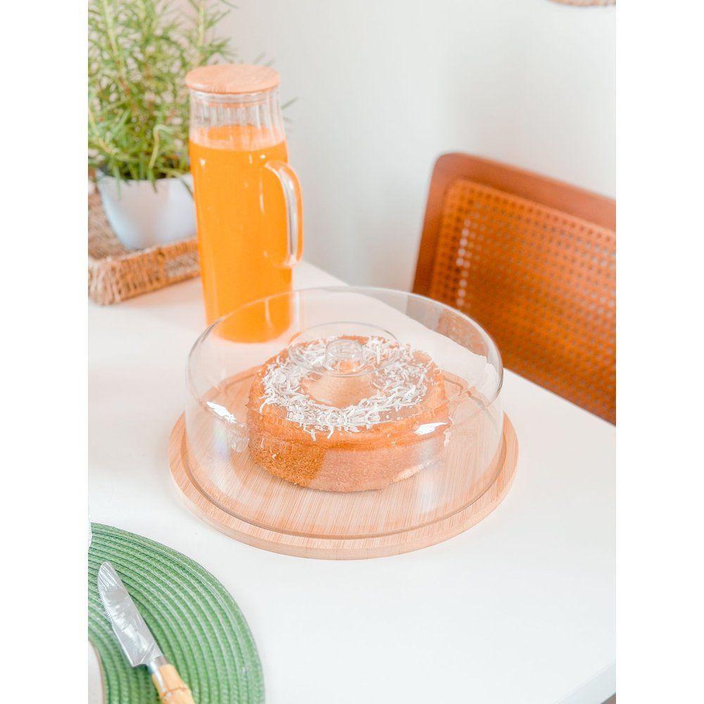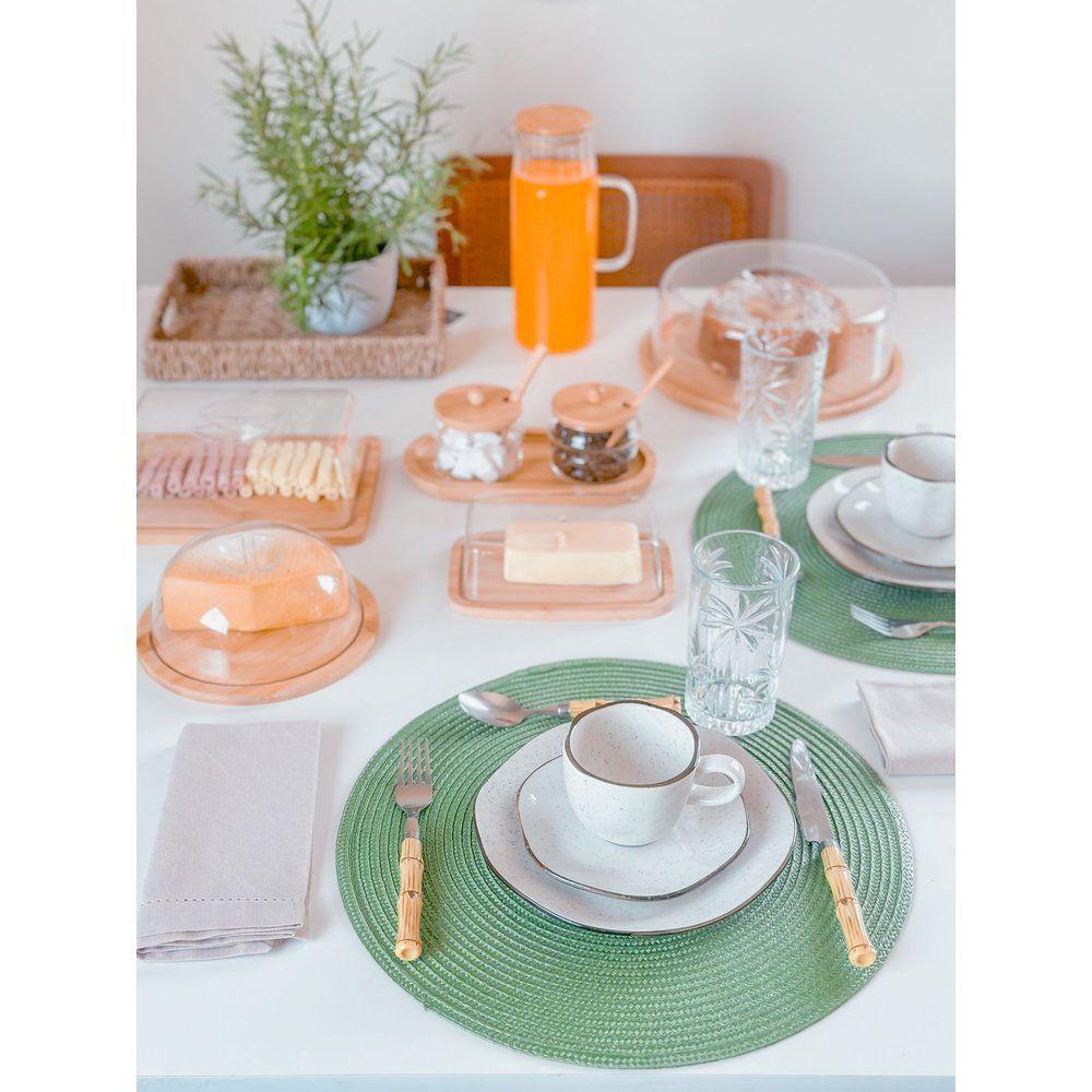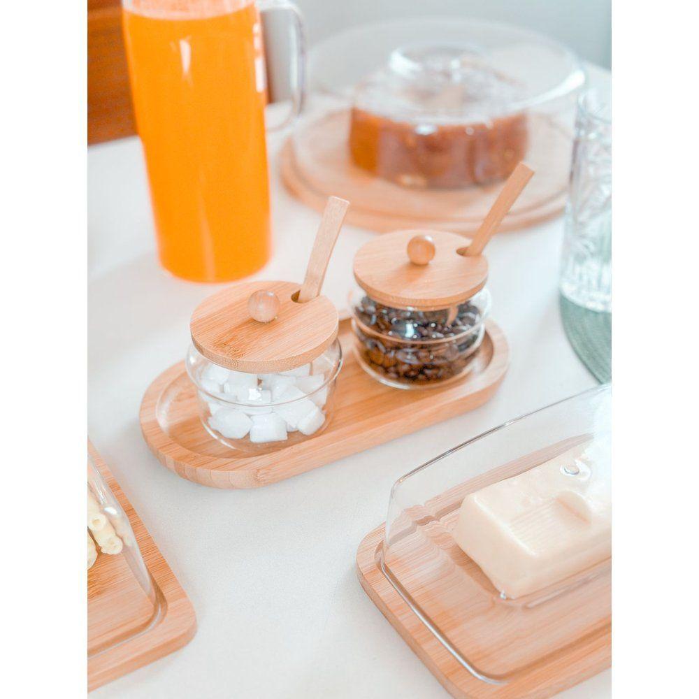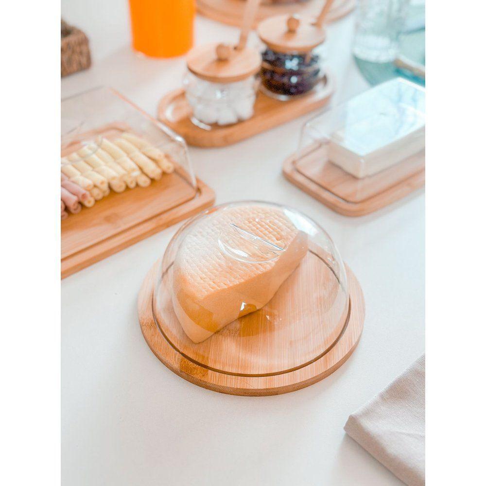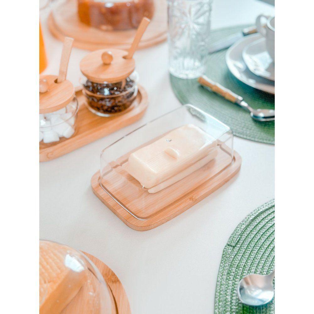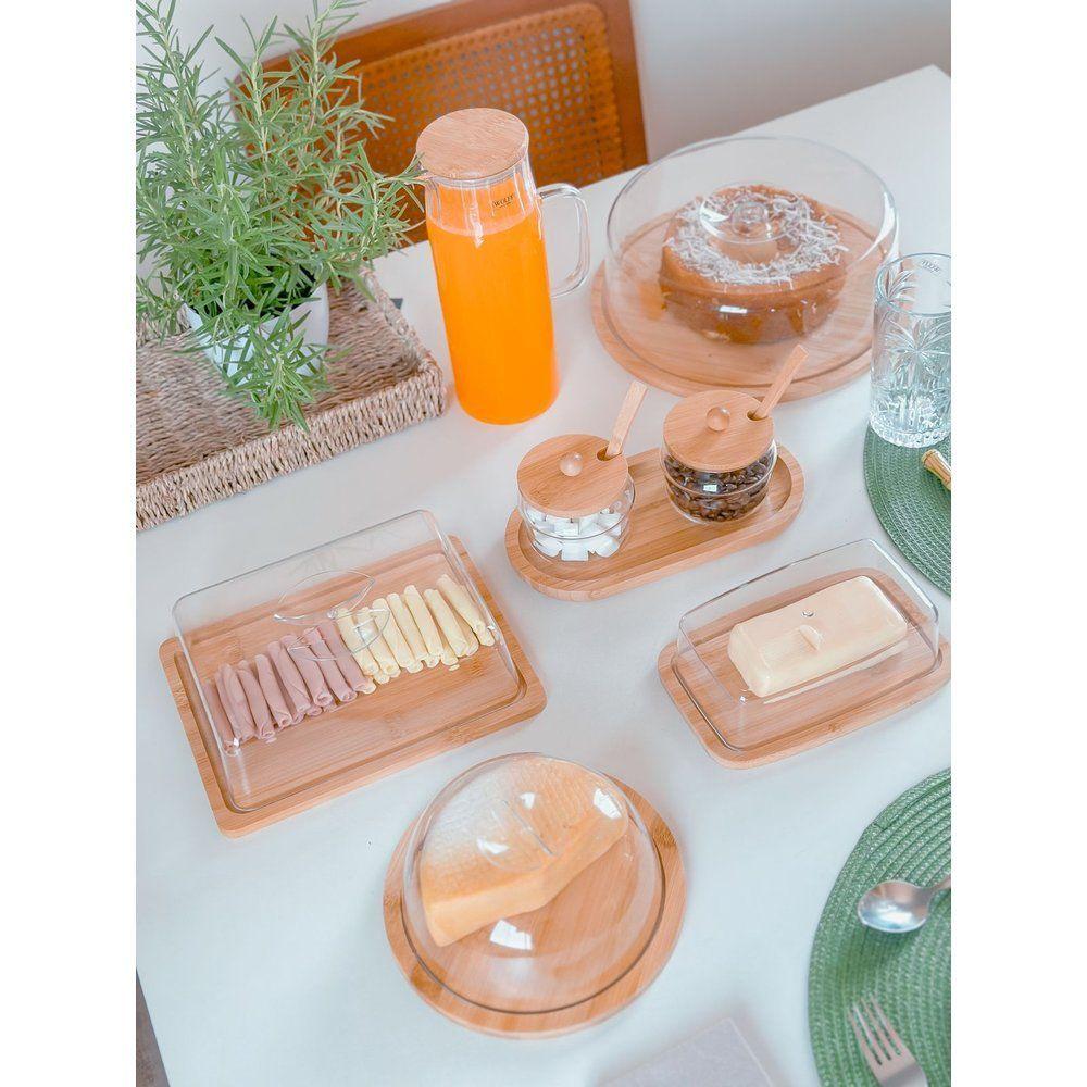 Kit Café Da Manhã Bambu - 8 Itens Boleira + Manteigueira + jarra + queijeira + porta Frios + 2 Potes + bandeja