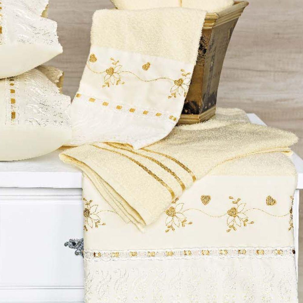 Jogo De Banho L' Amour Bordado Algodão 5 Peças - Marfim