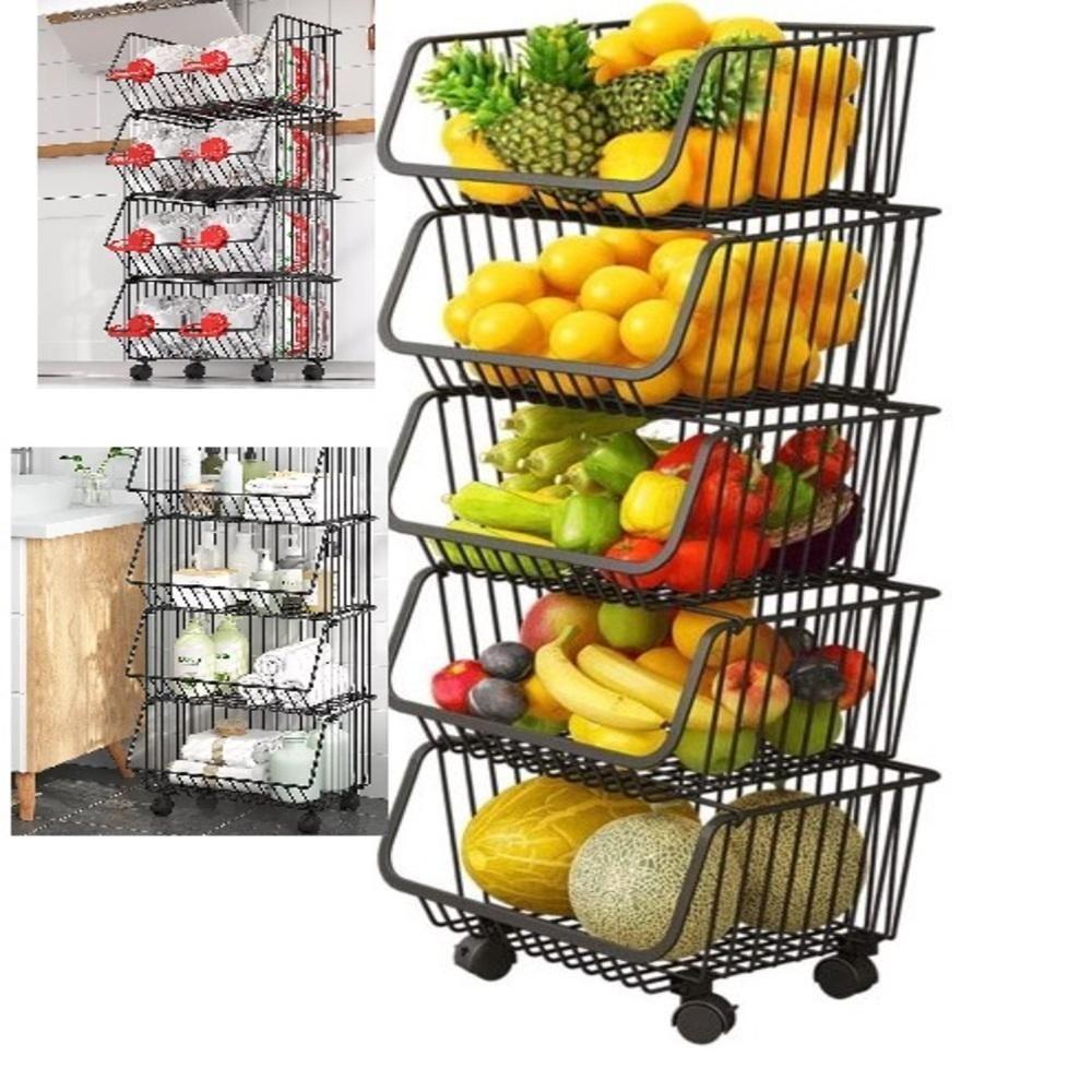 Carrinho Multiuso Organizador 5 Prateleiras Fruteira Escritorio Sala Em Aço Auxiliar Brinquedos Preto