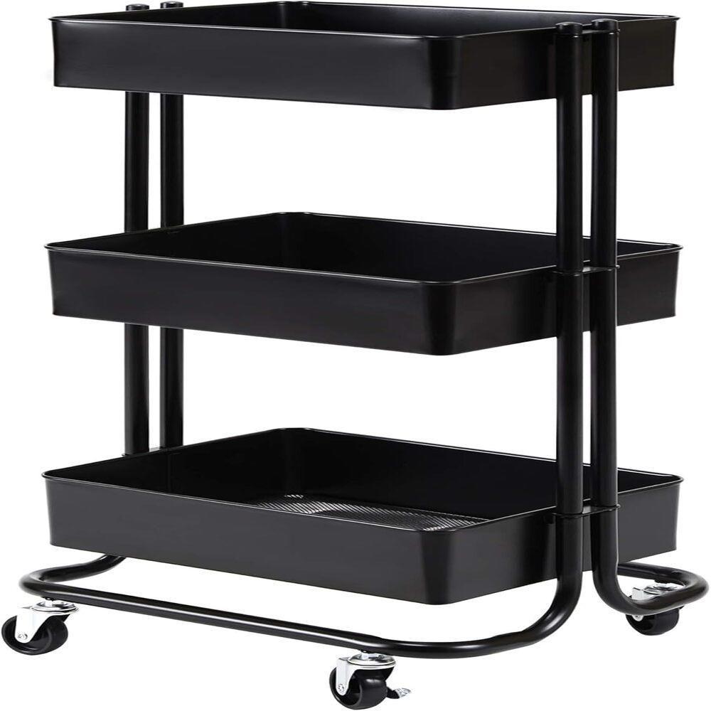 Carrinho Multiuso Organizadora 3 Prateleiras Em Aço Preta Quarto Sala Brinquedos Salao Manicure Varanda