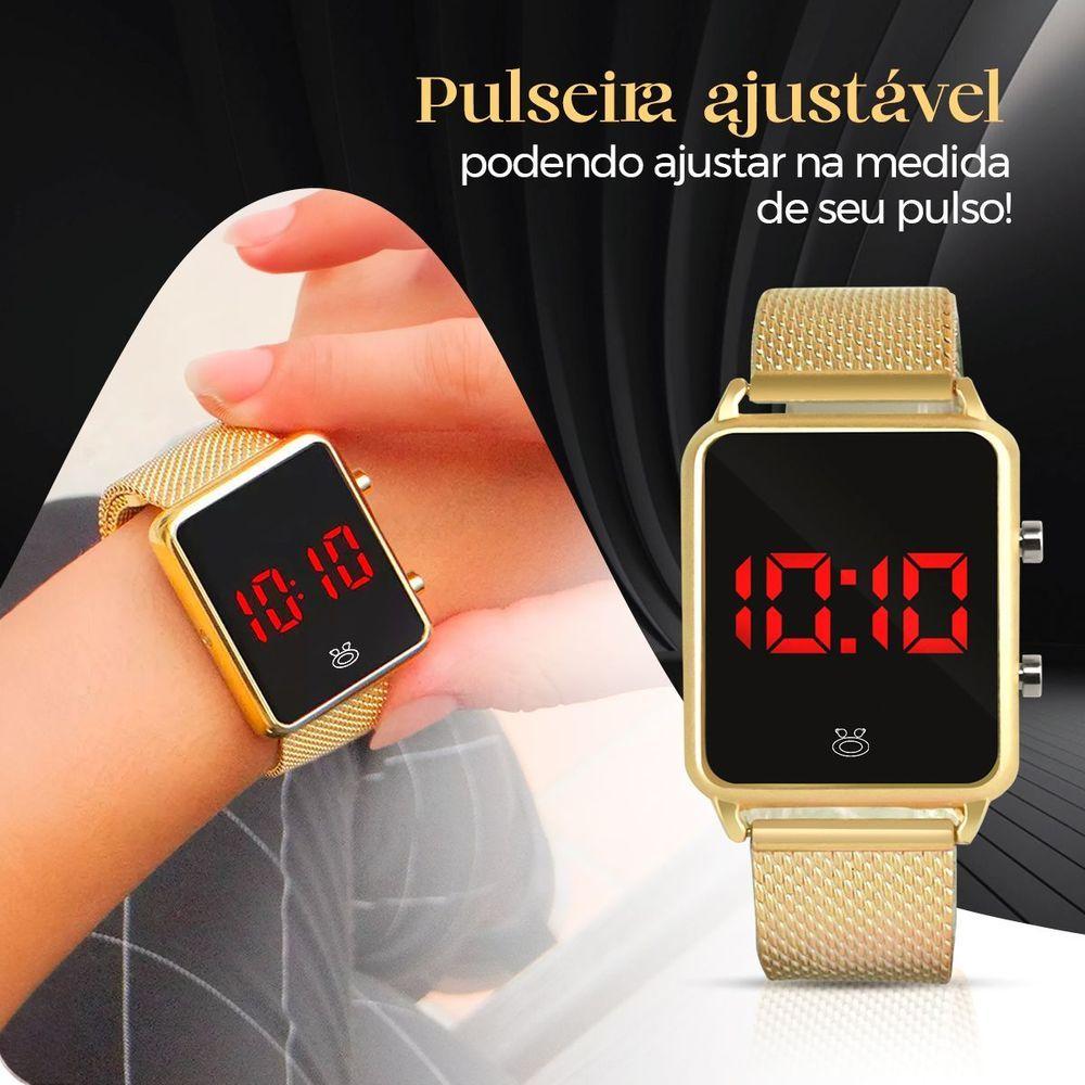 Relogio Feminino Banhado Digital Aço Inox Social Casual Pulseira Ajustável Original Presente Led