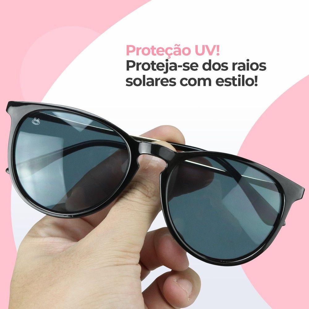 Oculos Feminino Redondo Qualidade Premium Proteção Uv + Case Preto Estiloso Moda Original