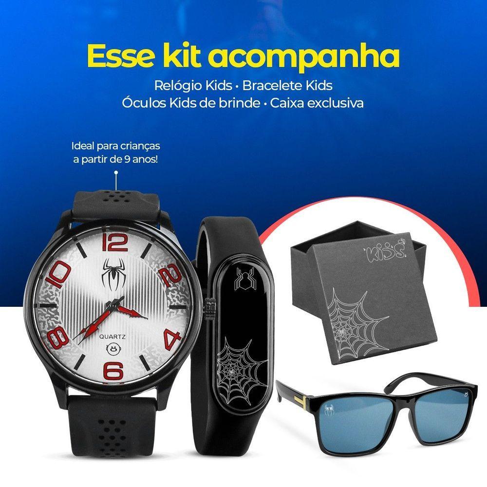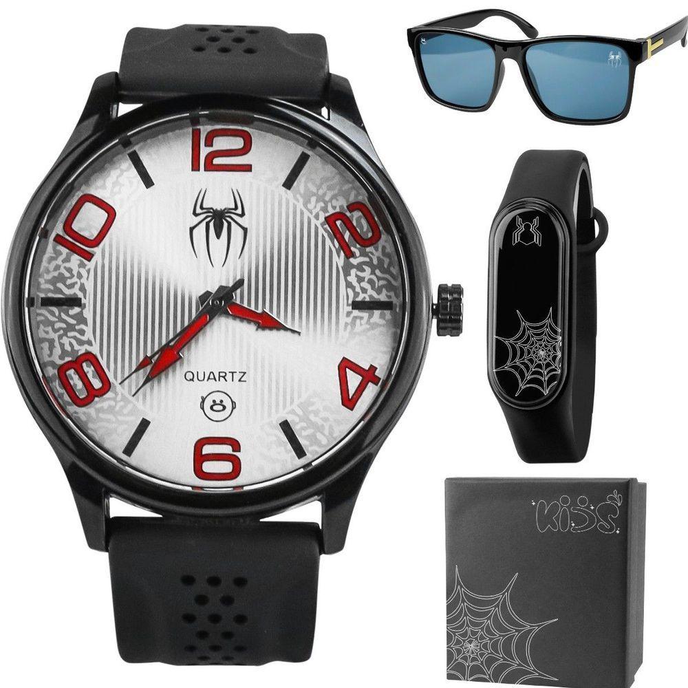Relogio Homem Aranha Infantil + Caixa Preto Adolescente Presente Ajustavel Esportivo Original SocialKit Orizom Spaceman do Homem-Aranha - Perfeito para Adolescentes!- 1 Relógio Orizom Spaceman Temático Homem-Aranha com Pulseira em Silicone Ajustável- 1 Relógio Digital Orizom Kids Temático Homem-Aranha em Formato de Bracelete Ajustável de Silicone- 1 Óculos de Sol Orizom Kids Temáticos Homem-Aranha com Proteção UV- 1 Caixa Premium Orizom Kids Temática Homem-Aranha!Prepare seu pequeno herói para enfrentar qualquer desafio com muito estilo! Com este kit, ele estará pronto para aventuras incríveis e cheias de ação. Não perca essa oportunidade de oferecer um presente emocionante e divertido para o seu filho. Adquira já o Kit Orizom Spaceman do Homem-Aranha e deixe ele entrar no mundo do herói aracnídeo de uma maneira única e especial!