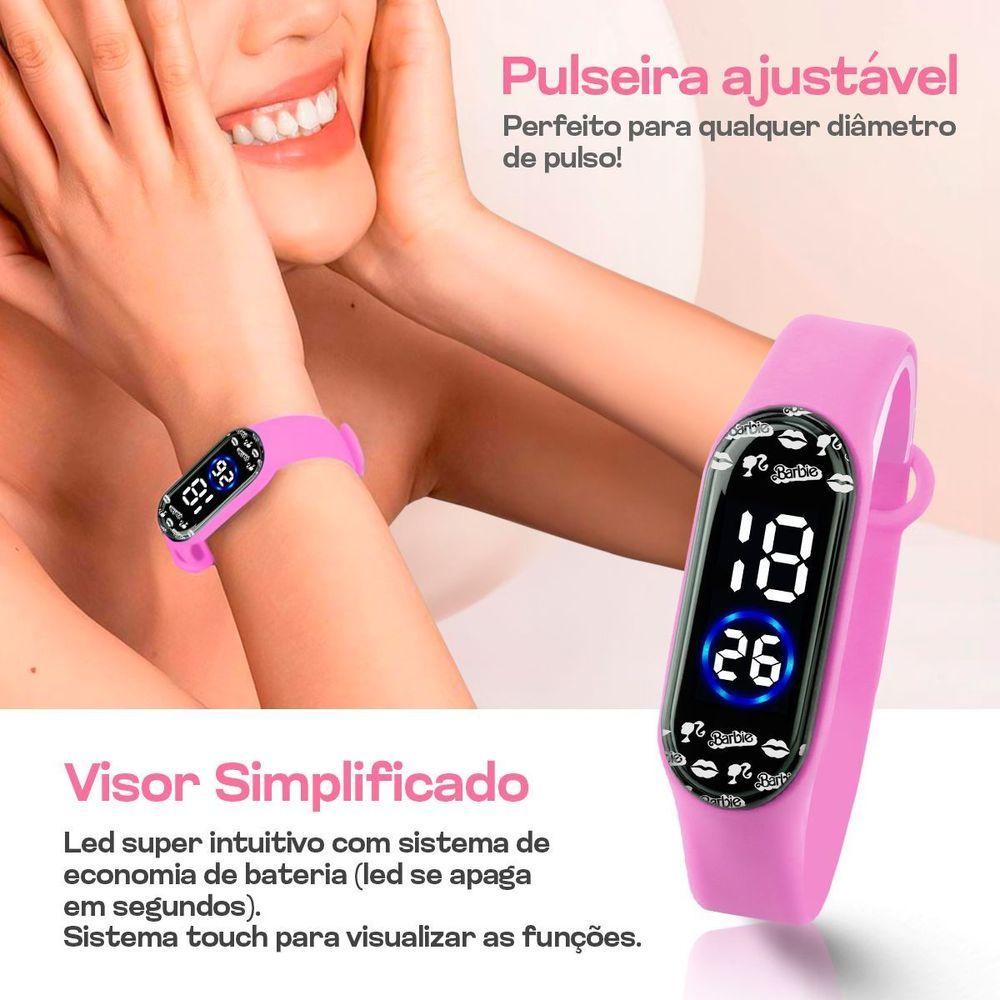 Relogio Infantil Digital Rosa Barbie + Caixa + Oculos Sol Resistente Menina Proteção Uv Presente