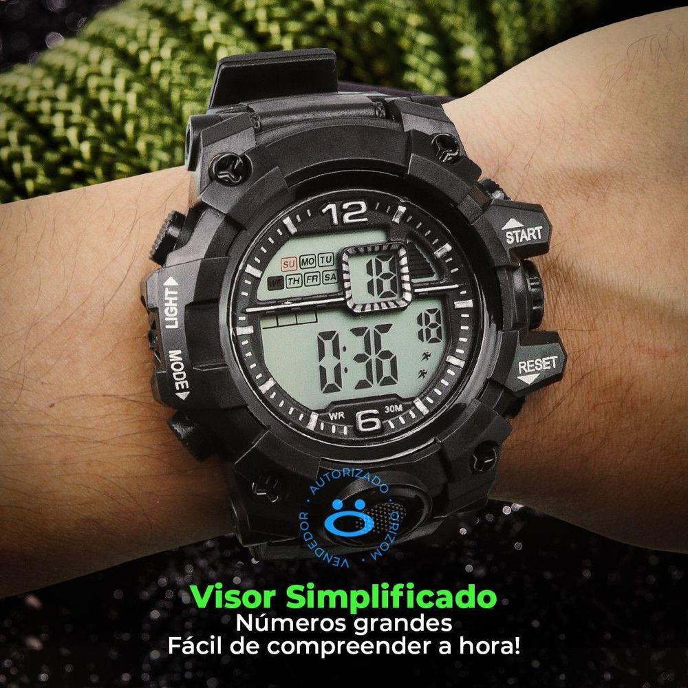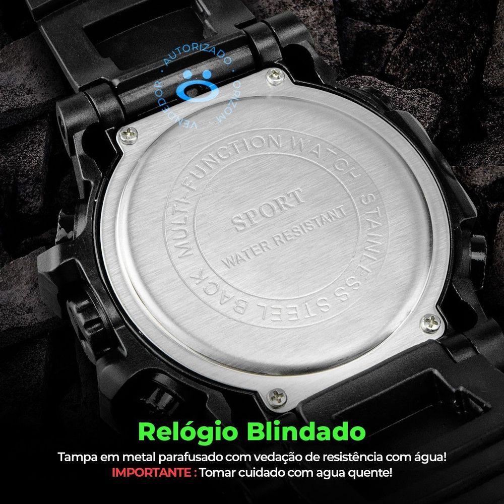 Oculos De Sol Protecao Uv + Relogio Masculino Preto + Caixa Esportivo Alarme Casual Grande Robusto