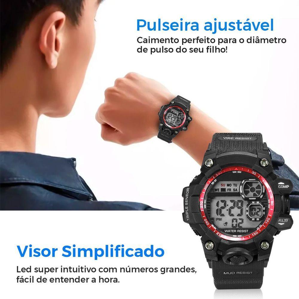 Relogio Criança Silicone Infantil Digital Menino Preto Presente Silicone Ajustavel Esportivo Data