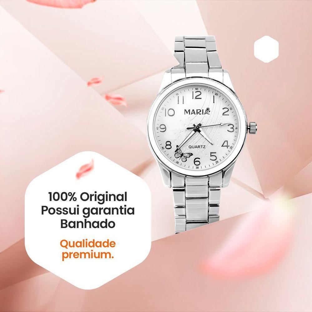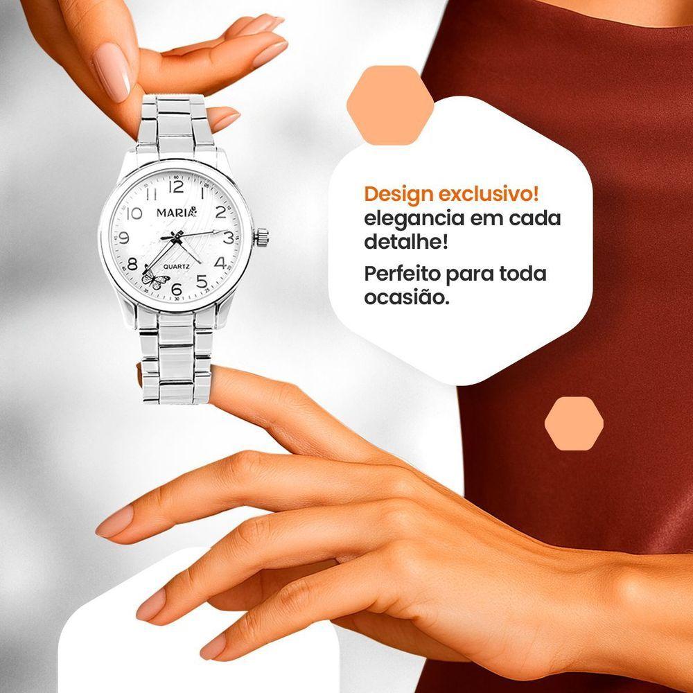 Relogio Aco Inox Prata Feminino + Pulseira + Brincos Colar Presente Social Strass Ajustavel Garantia