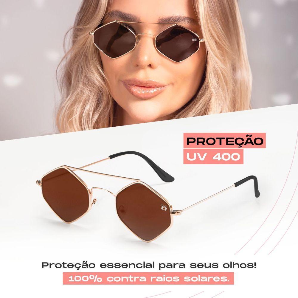 Oculos Sol Feminino Losango Proteção Uv Marrom Metal + Case Casual Proteção Uv Moda Presente Verão