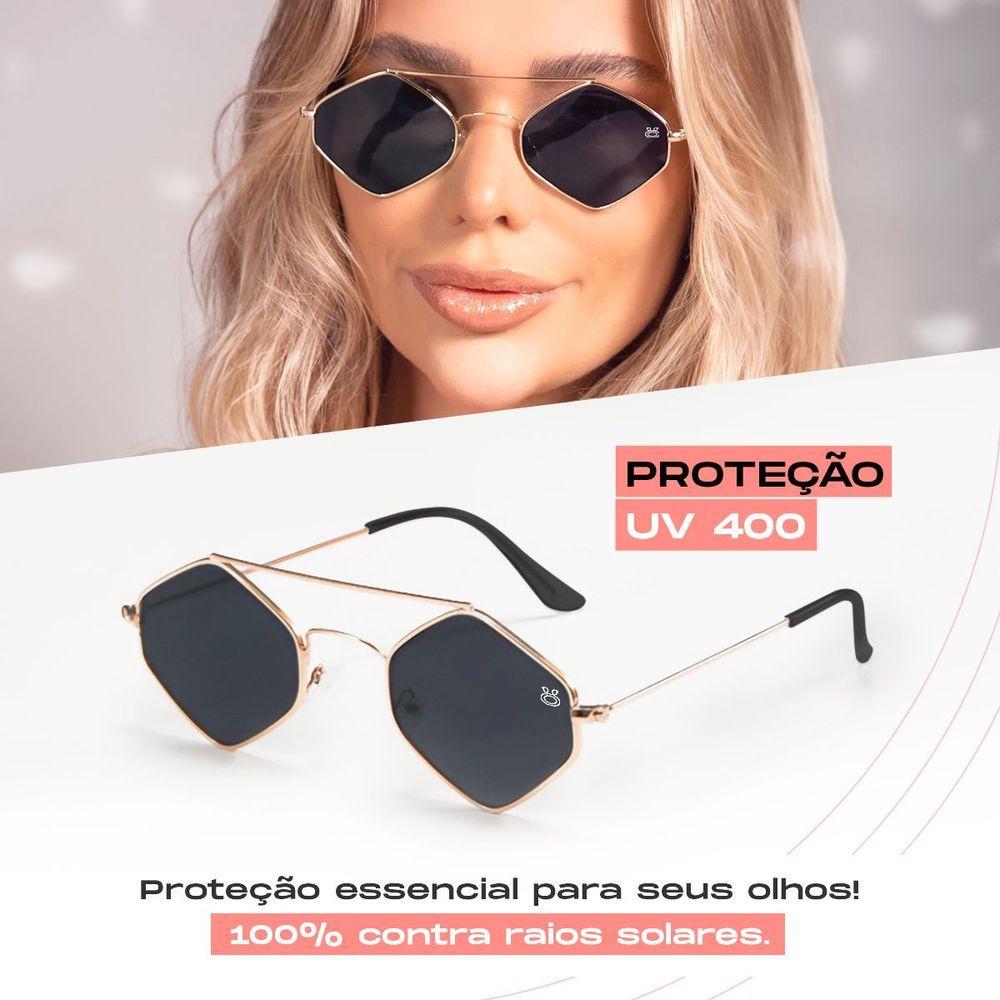 Oculos Sol Feminino Losango Aço Metal Proteção Uv + Case Maria Proteção Uv Moda Praia Presente Verão