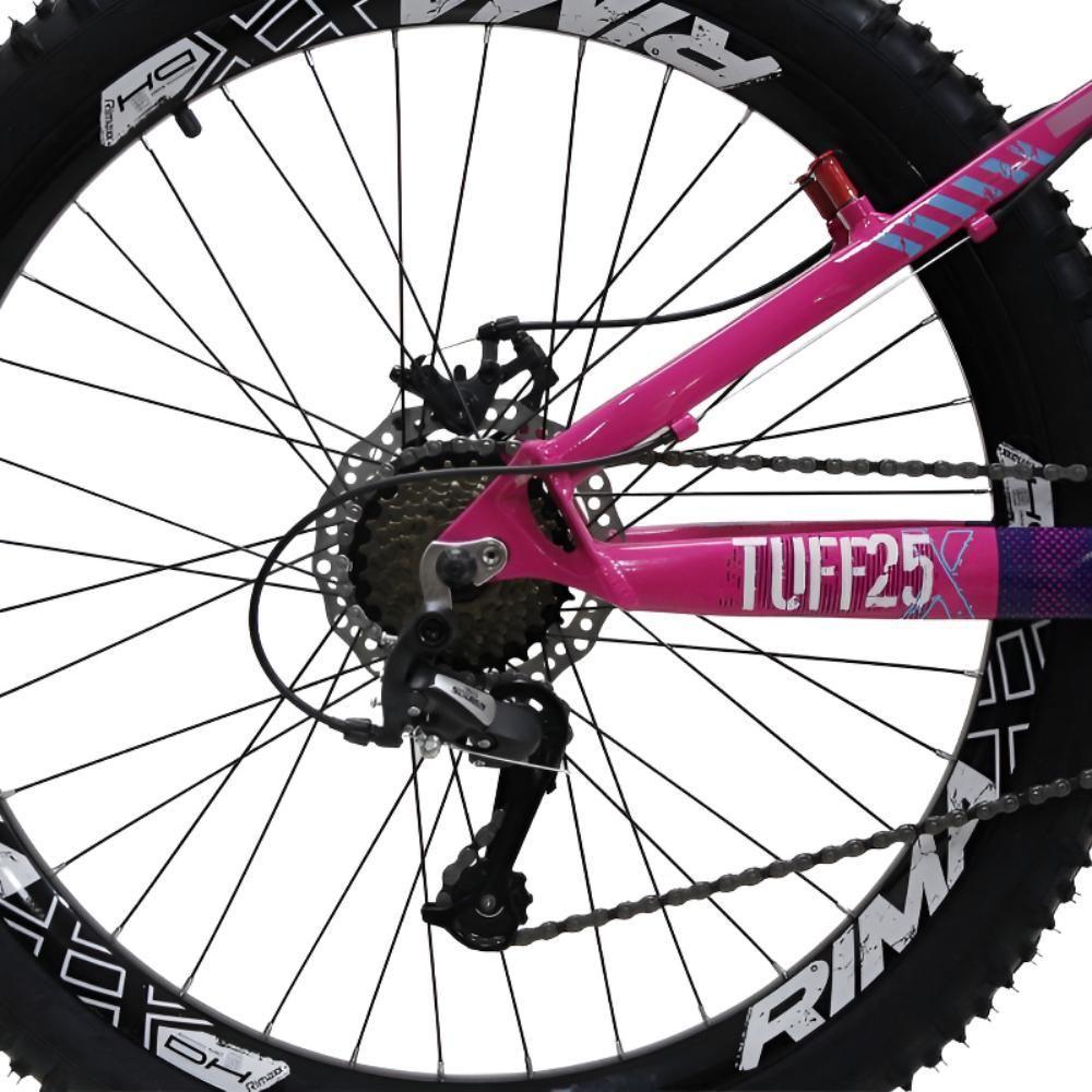 Bicicleta Aro 26 Bike Vikingx Freeride 21v Freio A Disco - Rosa/ Azul - Tu Rosa/ AzulSe você procura uma bicicleta versátil e resistente para desafiar diversos tipos de terrenos, a Bicicleta Aro 26 Freeride Vikingx é a escolha ideal. Com um quadro em alumínio durável, freios a disco confiáveis e um design atraente, esta bicicleta oferece uma combinação perfeita de desempenho, estilo e aventura. Prepare-se para explorar horizontes e conquistar os terrenos mais desafiadores com a Vikingx ao seu lado. Quadro Vikingx 26 Alumínio. Cambio Dianteiro Index. Cambio Traseiro Index. Alavanca Ez-fire Index. Garfo suspensão 29. Canote Selim S/Carrinho Alumínio. Guidão em alumínio. Freio a Disco Mecanico. Pneu 26 Multi-terreno. Roda Livre 7v. Selim Mtb. Corrente fina. Pedal Frestylle Nylon. Pedivela Aço revestido em Nylon. Aro Parede Dupla em alumínio. Montagem: A bicicleta vai montada e revisada, por motivo de acomodação na embalagem, são retirados selim, pedais, guidão e roda dianteira. A montagem final é de responsabilidade do cliente, sugerimos a mesma seja feita por uma oficina especializada (a empresa não se responsabiliza pela montagem e regulagem final da mercadoria). Garantia: 1 ano para o quadro e 3 meses para os componentes (ambos contra de fabricação). A garantia não cobre por mau uso ou pela montagem inadequada do produto. Imagem meramente ilustrativa. Marchas: 21 | Aro: 26 | Modalidade: Freeride | Suspensão: Dianteira | Cor: ROSA/ AZUL
