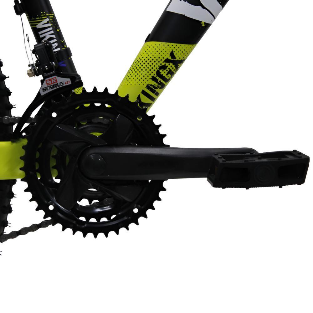 Bicicleta Aro 26 Bike Vikingx Freeride 21v Freio A Disco - Preto/ Amare - Tu Preto/ AmareSe você procura uma bicicleta versátil e resistente para desafiar diversos tipos de terrenos, a Bicicleta Aro 26 Freeride Vikingx é a escolha ideal. Com um quadro em alumínio durável, freios a disco confiáveis e um design atraente, esta bicicleta oferece uma combinação perfeita de desempenho, estilo e aventura. Prepare-se para explorar horizontes e conquistar os terrenos mais desafiadores com a Vikingx ao seu lado. Quadro Vikingx 26 Alumínio. Cambio Dianteiro Index. Cambio Traseiro Index. Alavanca Ez-fire Index. Garfo suspensão 29. Canote Selim S/Carrinho Alumínio. Guidão em alumínio. Freio a Disco Mecanico. Pneu 26 Multi-terreno. Roda Livre 7v. Selim Mtb. Corrente fina. Pedal Frestylle Nylon. Pedivela Aço revestido em Nylon. Aro Parede Dupla em alumínio. Montagem: A bicicleta vai montada e revisada, por motivo de acomodação na embalagem, são retirados selim, pedais, guidão e roda dianteira. A montagem final é de responsabilidade do cliente, sugerimos a mesma seja feita por uma oficina especializada (a empresa não se responsabiliza pela montagem e regulagem final da mercadoria). Garantia: 1 ano para o quadro e 3 meses para os componentes (ambos contra de fabricação). A garantia não cobre por mau uso ou pela montagem inadequada do produto. Imagem meramente ilustrativa. Marchas: 21 | Aro: 26 | Modalidade: Freeride | Suspensão: Dianteira | Cor: PRETO/ AMARE