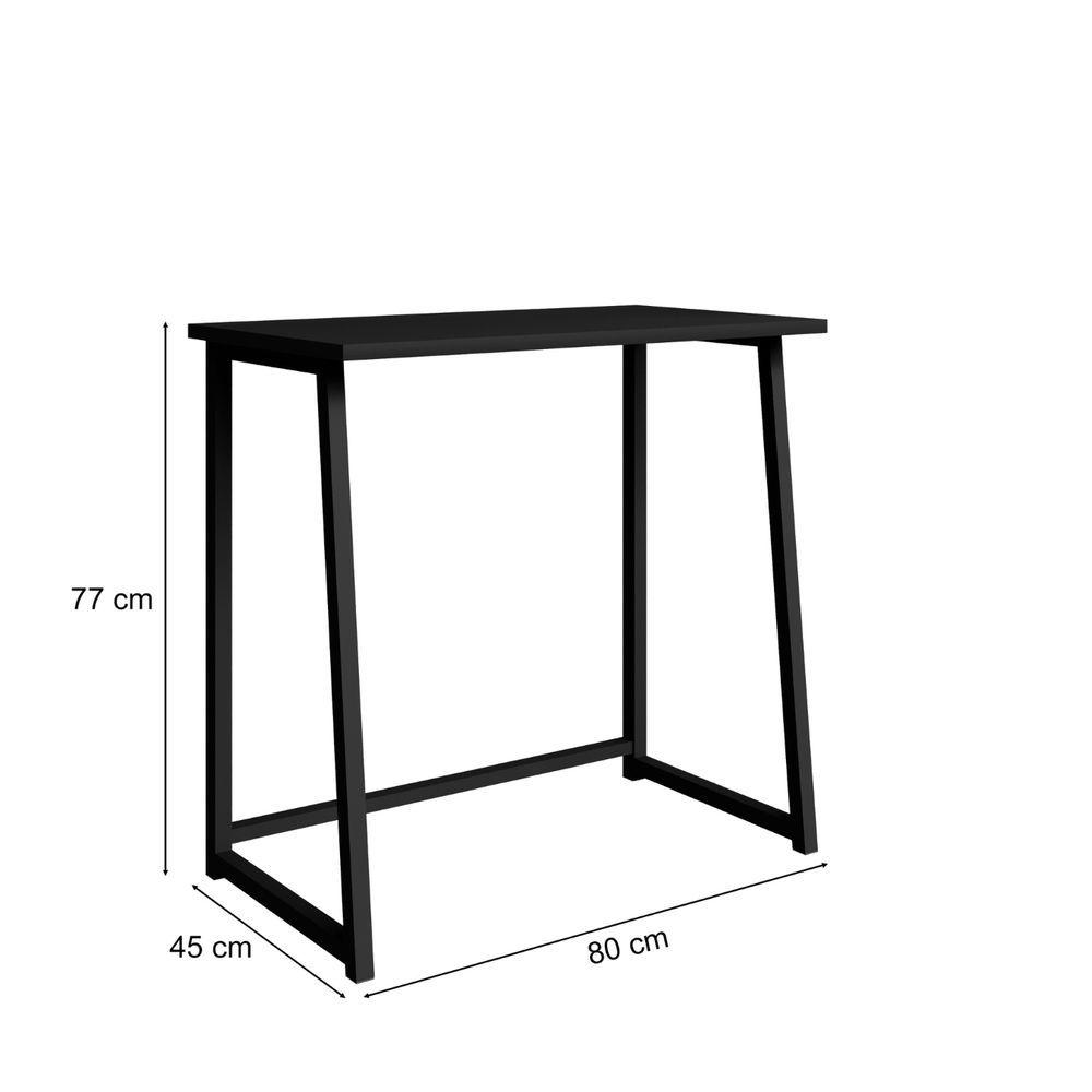 Mesa Escrivaninha Dobrável Para Notebook Aço Fit PretoA Escrivaninha Portátil Fit Dobrável é ideal para quem precisa de praticidade e versatilidade. Seu design dobrável e articulado facilita a adaptação a diferentes espaços e necessidades. Fabricada com aço carbono pintado eletrostaticamente e tampo em MDF, materiais de alta qualidade que oferece durabilidade e resistência.Além disso, seu design antiderrapante garante segurança e estabilidade, tornando-a uma excelente escolha para estudantes e profissionais que trabalham em home office.CARACTERÍSTICAS PRINCIPAIS:- Estrutura em aço carbono reforçado, que oferece mais durabilidade e resistência ao móvel;- Tampo em MDF de excelente qualidade ;DIMENSÕES DO PRODUTO:Largura: 80 cmProfundidade: 45 cmAltura: 77 cmLimpeza do produto:Para maior durabilidade, recomenda-se que a limpeza seja feita com pano limpo e levemente umedecido em água e sabão neutro, seguida de pano limpo e seco.INFORMAÇÕES ADICIONAIS:- Os objetos que ambientam as fotos não acompanham o produto;- O produto será entregue desmontado;- É de inteira responsabilidade do cliente a montagem do produto e/ou instalação, custos de transporte por escadas e/ou elevadores, guincho ou içamento, assim como possíveis irregularidades provenientes de manuseio inadequado;- Embora o produto acompanhe o manual de montagem, verifique a complexidade antes de decidir montá-lo sozinho, recomendamos que contrate um de sua confiança;- Fique atento, nossas cores podem sofrer alterações dependendo da calibração do seu monitor e ao tratamento das imagens;- ANTES DE MONTAR O SEU PRODUTO, certifique-se que todas as instruções dispostas no manual, bem como todas as ferragens descritas, estejam presentes dentro da embalagem. Verifique se há alguma peça danificada, caso esteja, prestaremos a devida assistência dentro do prazo da .