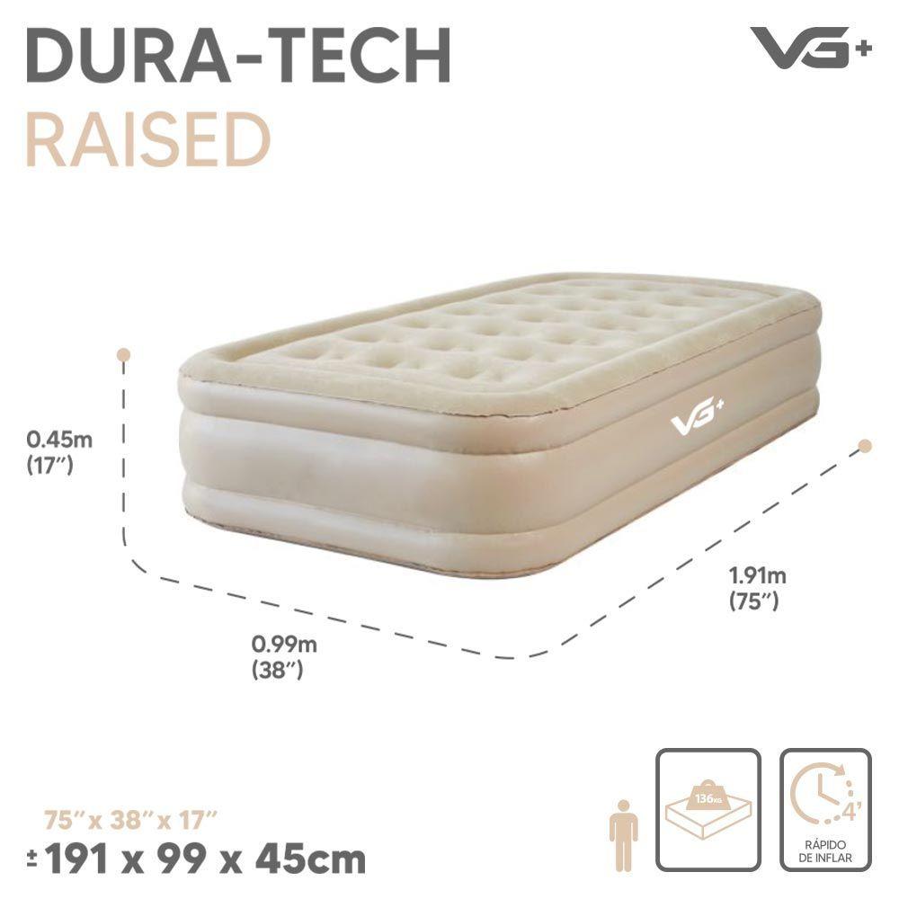 Colchão Inflável Solteiro Raised Com Inflador Lítio Usb Vg Plus Bege