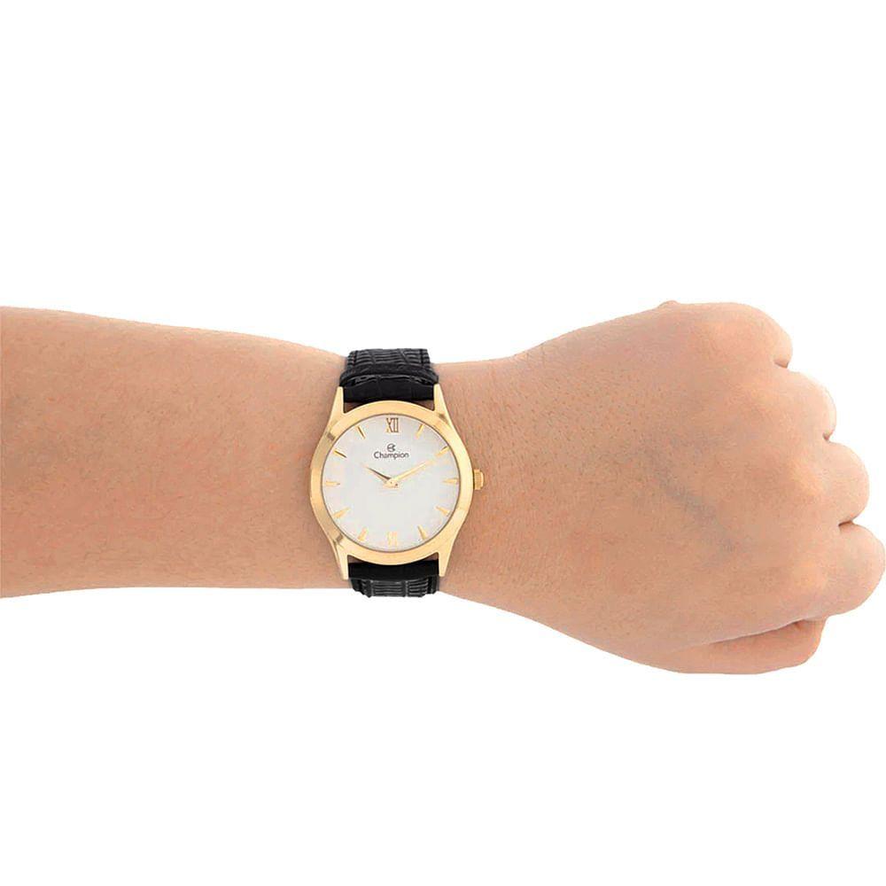 Relógio Champion Feminino Dourado Couro Preto Ch22742m