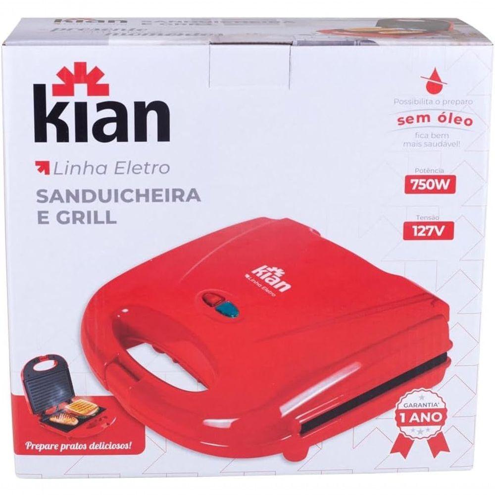 Sanduicheira Grill Kian 750W Vermelha Chapa Antiaderente 110V