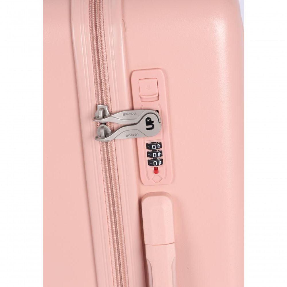 Mala De Viagem Media Pink - M PinkApresentamos mais um lançamento incrível da nossa coleção UP4You: o modelo Rolling. Com design em tons suaves, esta mala é perfeita para o público infantil, juvenil e adultos.Ela conta com alça retrátil, rodas duplas em dois tamanhos e cadeado embutido, garantindo praticidade e segurança. A abertura lateral possui um zíper personalizado da marca, e o modelo apresenta um acabamento em alto relevo liso com o logo da UP4You em metal. O forro em poliéster inclui uma divisória interna com fechamento em zíper, elástico interno e um bolso com zíper, proporcionando excelente organização. Fabricada em ABS, é de fácil manuseio e durabilidade.Além disso, a mala para o tamanho P possui um bolso organizador lateral removível.Modelo: MF10464UPDimensões: Pequena: 55x37x23 cm Média: 73x50x26,5 cmCaracterísticas: Bolso interno com zíper Forro em poliéster Alça retrátil Rodas duplas em dois tamanhos Cadeado embutido Abertura lateral com zíper personalizado da marca Elástico interno Design em alto relevo liso com logo em metal UP4You Divisória interna com fechamento em zíper Material: ABSCuidados com a sua mala: Evite usar a mala apenas pelas duas rodas Não exceda o peso limite Não esfregue ou utilize produtos químicos Cuidado com objetos cortantes que podem danificar o forro Manuseie os cursores do zíper com atençãoLimpeza: Utilize apenas água e sabão neutro. Passe um pano suavemente na superfície para remover a sujeira, garantindo que o produto permaneça em excelente estado. Modelo: MF10464UP-26 | Origem: Importados | Comprimento real: 27 | Tempo de Garantia: 24 | Peso real: 3,8 | Altura real: 73 | Coleção: Up4you | Largura real: 50 | Gênero: Unissex | Garantia: 24 meses | Material: ABS Cor: Pink