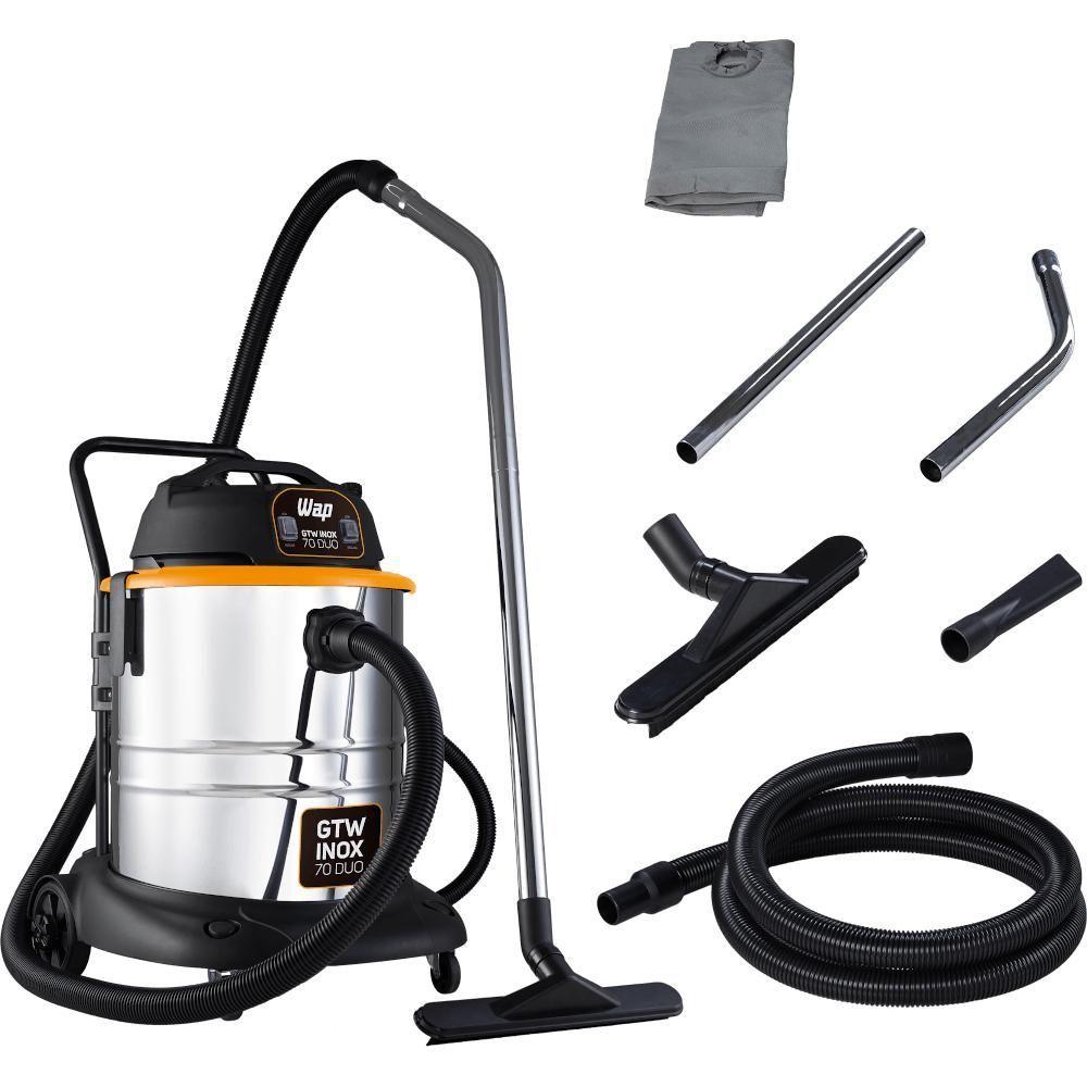 Aspirador De Pó E Água WAP GTW Inox 70 Duo 220VPara quem procura facilidade e FORÇA BRUTA na hora da faxina, está na hora de conhecer o Aspirador WAP GTW INOX 70 DUO. O Lançamento da WAP é o mais robusto e superior aspirador da categoria, tenha o resultado de limpeza profissional no seu dia a dia.O poderoso Aspirador WAP GTW INOX 70 DUO possui dois motores com potência de até 2800 W, garantindo máxima eficácia na aspiração de sólidos e líquidos.Com capacidade para 70 litros em recipiente inox, proporciona maior resistência em um lindo design. O Aspirador WAP GTW INOX 70 DUO é o mais indicado para trabalhos pesados em comércios como, lava cars, indústrias e pós obras, recolhendo com eficiência todos os resíduos.Tenha autonomia e segurança para ir e vir em áreas internas e externas com 4 rodas para transporte, cabo elétrico 4,5 metros, 2 travas do cabeçote, suporte para acessórios e bóia de Água para segurança do motor. Uma opção inteligente para quem quer força com praticidade.O Aspirador WAP GTW INOX 70 DUO é o mais potente aspirador da família GTW e também a opção ideal para aspirar com facilidade áreas que exigem grandes esforços.Robusto e Ágil, é equipado com mangueira de 3 metros, mais cabos extensores para alcançar inclusive as regiões mais distantes.Todas as funcionalidades com força POWER! Dentre os acessórios que acompanham estão bico canto, bico múltiplo e bico escova que permitem aspirar pisos, tapetes, carpetes, estofados e outros.A usabilidade é garantida com o fácil esvaziamento pela mangueira dreno. Limpeza leve ou pesada, tenha mais produtividade com o Aspirador WAP GTW INOX 70 DUO.Voltagem: 220VDimensões da caixa (C x L x A): 63 x 55 x 74,6 Peso bruto: 0 Filtro: HEPA Tipo de plugue: 2 pinos Código EAN: 7898152187525 (110V), 7898152187532 (220V) Aspira Água?: Sim Código WAP: FW006252 (110V) / FW006253 (220V) A bateria / sem fio?: Cabo Conteúdo da embalagem: 1 Aspirador de Pó GTW Inox 70 DUO; 1 Mangueira para sucção de 3 metros; 1 Extensão metálica reta de 700 mm; 1 Extensão metálica curva 600 mm; 1 Bico para cantos para utilização direta na mangueira; 1 Bico Múltiplo para utilização direta na extensão metáli Dimensões do produto (C x L x A): 61 x 57 x 83 cm Motor: 2 Motores - Universal Acessórios: 1 Mangueira para sucção de 3 metros; 1 Extensão metálica reta de 700 mm; 1 Extensão metálica curva 600 mm; 1 Bico para cantos para utilização direta na mangueira; 1 Bico Múltiplo para utilização direta na extensão metálica; 1 Bico escova para utilização d Volume total do recipiente: 70 L Componentes: 2 Motores com acionamento individual; Cabo elétrico com 4,5 metros; Alça metálica removível para transporte; 2 Travas do cabeçote; 4 Rodas robustas para transporte; Porta acessórios; Dreno para esgotamento; Válvula de segurança para aspirar Água. Corrente elétrica / Amperagem: 20 A Peso líquido: 15,2 kg Tipo de filtro: HEPA Níveis de filtragem: 2 Comprimento cabo elétrico: 4,5 m Capacidade útil do recipiente (líquidos / sólidos): 34,5 / 41 L Cor: Inox com Preto e Amarelo Vácuo: 200 mbar compre-junto: 79 Potência elétrica: 2000 W - 2 motores de 1000 W cada Voltagem: 110V ou 220V (escolher no momento da compra)