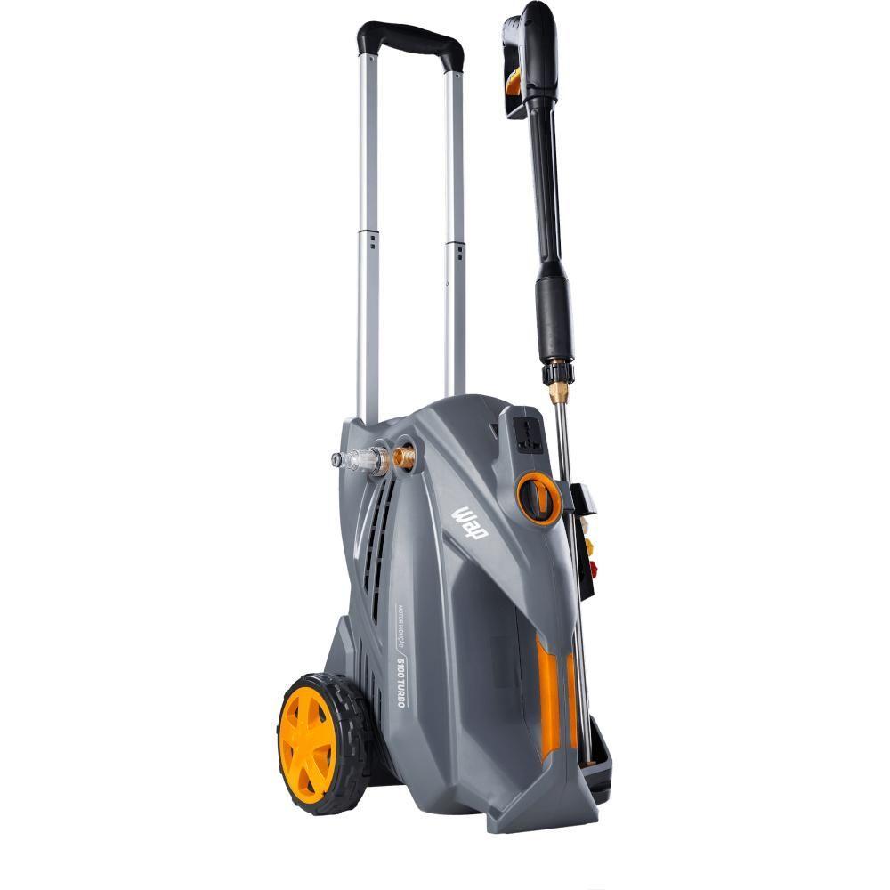 Desobstruidora De Alta Pressão 2500W 2300PSI WAP 5100 Turbo Ultra 220VA Desobstruidora de Alta Pressão WAP Turbo ULTRA 5100 é a melhor opção para limpar sujeiras pesadas e profundas de grandes áreas com rapidez e agilidade. Com motor de indução, vazão máxima de até 550 L/h, bico turbo, potência de até 2500W e pressão máxima de até 2300 PSI, é o equipamento de uso frequente perfeito para a remoção de níveis incrustados de sujeira nos mais diversos tipos de pisos e superfícies. É uma máquina compacta, durável, robusta e super prática para transportar com alças de alumínio retrátil e emborrachada. A WAP Turbo ULTRA 5100 cabe, inclusive, na caixa de transporte de motocicletas. Possui um exclusivo porta-acessórios que ajuda na organização dos componentes do produto e rodas que facilitam o transporte.A Desobstruidora e Lavadora de Alta Pressão WAP Turbo ULTRA 5100 conta com uma bomba axial com cabeçote de alumínio e pistões em aço inox, que garantem mais durabilidade ao produto. Além disso, vem com cabo elétrico de 5 metros, mangueira desentupidora de 2 metros e mangueira de alta pressão com trama de aço de 10 metros que permitem cobrir uma grande área sem precisar locomover a máquina. Equipado com gatilho com trava de segurança, bicos de 15°, 25° e 40° além do sistema stop total, que corta o fluxo de Água e a energia do motor ao soltar o gatilho, poupando energia e aumentando a vida útil do motor.E, para o trabalho ficar ainda mais fácil e dinâmico, vem equipada com o engate rápido e filtro, para você montar e desmontar a mangueira em um clique, sem a necessidade de usar ferramentas. A Desobstruidora Lavadora de Alta Pressão WAP Turbo ULTRA 5100 é uma excelente máquina para ser usada em empreendimentos como: pequenos mercados, padarias, restaurantes, frutarias, açougues e condomínios.Com a WAP Turbo ULTRA 5100 você pode chegar muito mais longe.WAP tem que ser da WAP!Voltagem: 220V Código EAN: 7899831301799 Corrente elétrica / Amperagem: 20 A Peso bruto: 24,5 kg Vazão: 550 L/h Classe de isolação: I Código WAP: FW007680 (220V) Dimensões da caixa (C x L x A): 51,5 x 45 x 37 cm Tipo de sujeira: Moderada Componentes: Bomba axial com cabeçote de alumínio; Pistões de aço inox; Cabo elétrico de 5 metros; Sistema Stop Total; Gatilho com trava de segurança; Filtro de Água; Espigão para conexão da mangueira; 2 Rodas para transporte; Alça ergonômica retrátil e emborrachada; Comprimento cabo elétrico: 5m Conteúdo da embalagem: Máquina, acessórios descritos e manual. Tamanho da mangueira: 10 m Motor: Indução Cor: Cinza com Amarelo Tem Certificado Inmetro?: Sim Pressão máxima: 2300 PSI Tipo de plugue: 3 pinos Potência elétrica: 2500 W Dimensões do produto (C x L x A): 33 x 33 x 92 cm Tipo do bico: Bico turbo Peso líquido: 18 kg Comprimento mangueira desentupidora: 2 m Acessórios: 1 Pistola de alta pressão com conexão de rosca M22; 1 Lança de inox com conexão rápida em latão; 4 Bicos com conexão rápida (0°, 15°, 25° e 40°); 1 Bico Turbo com conexão rápida; 1 Mangueira de alta pressão com 10 m de trama de aço; 1 Mangueira Desentupid Tipo da mangueira: Mangueira de trama de aço Área de limpeza: 80 m² Frequência: 60 Hz