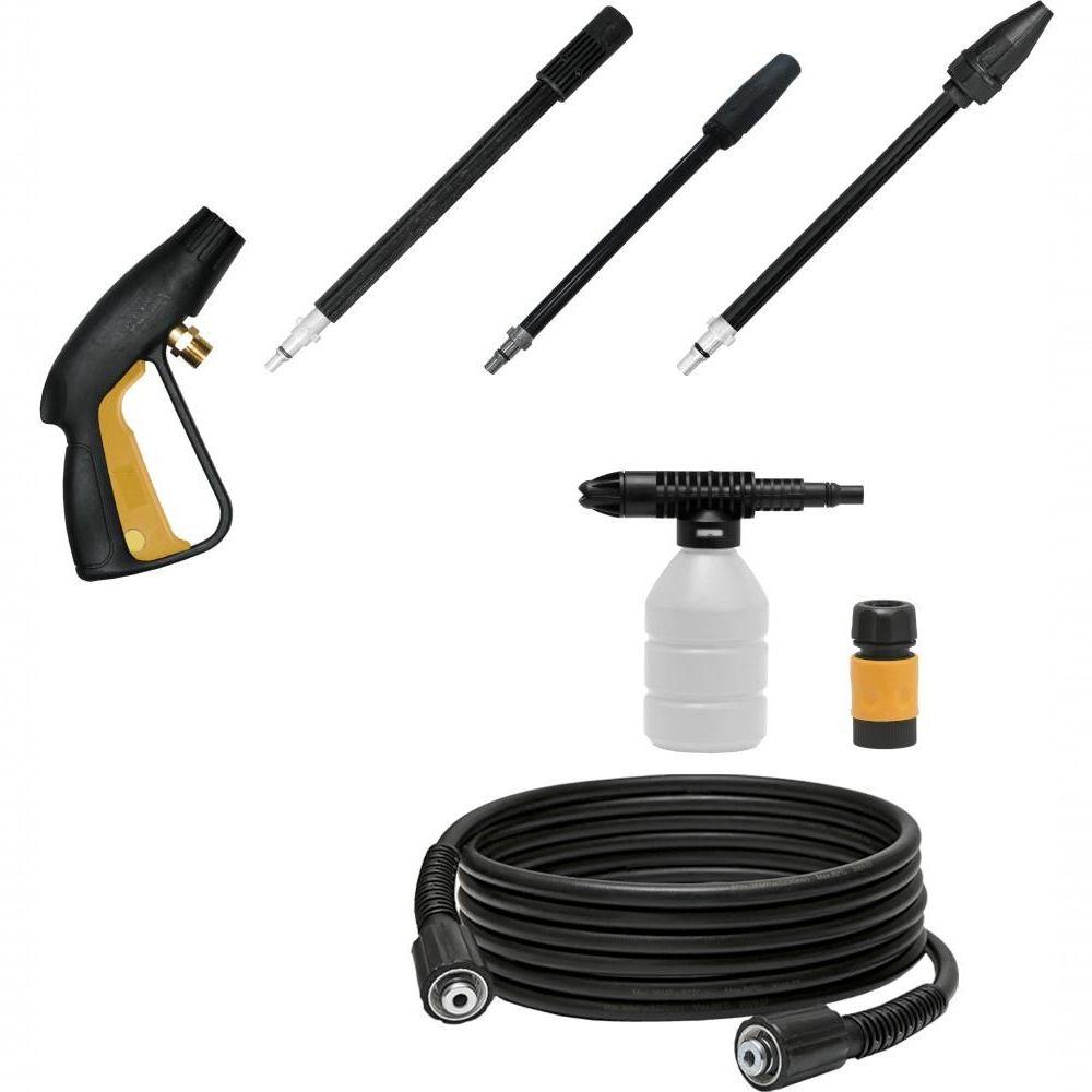 Desobstruidora De Alta Pressão 1900W 2400PSI WAP Premium Ultra 2600 110VA Desobstruidora de Alta Pressão WAP Premium ULTRA 2600 conta com cabo elétrico de 5 metros e mangueira de alta pressão com trama de aço de 5 metros que permitem cobrir uma grande área sem precisar locomover a máquina. Além de desentupir canos, calhas e tubulações com facilidade utilizando jato de Água! Vem com trava de segurança da pistola, bico regulável (concentrado ou leque), aplicador de detergente e o sistema stop total, que corta o fluxo de Água e a energia do motor ao soltar o gatilho, poupando energia e aumentando a vida útil do motor.A lavadora de alta pressão conta também com pistões em aço inox que, junto com o motor de indução, conferem mais durabilidade para o produto. Para deixar o produto mais completo, a máquina vem equipada também com o bico turbo que possibilita a limpeza de sujeiras pesadas de forma mais prática e rápida.A Desobstruidora e Lavadora de Alta Pressão WAP Premium ULTRA 2600 vem com um porta-acessórios que acomoda pistola, baioneta e lança. E, para o trabalho ficar ainda mais fácil e dinâmico, ela vem equipada com o engate rápido, para você montar e desmontar a mangueira em um clique, sem a necessidade de usar ferramentas. Se você procura agilidade e praticidade para o seu dia a dia, não perca mais tempo e garanta já a sua Desobstruidora Lavadora de Alta Pressão WAP Premium ULTRA 2600.WAP tem que ser da WAP!Tipo de plugue: 3 pinos Classe de isolação: I Shampoozeira: Sim Dimensões do produto (C x L x A): 34,5 x 26,5 x 74,5 cm Tipo do bico: Bico turbo Tipo da mangueira: Mangueira de trama de aço Pressão máxima: 2400 PSI Cor: Amarelo com Preto Voltagem: 110V ou 220V (escolher no momento da compra) Vazão: 2400 PSI Código EAN: 7899831301492 (110V) / 7899831301508 (220V) Motor: Indução Componentes: Bomba axial; Pistões em aço inox; Cabo elétrico 5 metros; 2 Rodas para transporte; Alça para transporte; Filtro de Água; Porta acessórios; Sistema Stop Total Potência elétrica: 1900 W Frequência: 60Hz Área de limpeza: 80 m² Comprimento cabo elétrico: 5 m Acessórios: 1 Pistola de alta pressão com trava de segurança; 1 Baioneta com conexão rápida; 1 Lança com bico regulável (leque e concentrado); 1 Lança com bico turbo; 1 Aplicador de detergente; 1 Mangueira de alta pressão de 5 metros com trama de aço; 1 Engate rápido Tem Certificado Inmetro?: Sim Peso líquido: 15,2 kg Tipo de sujeira: Moderada Corrente elétrica / Amperagem: 20 A Conteúdo da embalagem: Máquina, acessórios descritos, manual. Peso bruto: 18 kg Dimensões da caixa (C x L x A): 81,5 x 30 x 39 cm Tamanho da mangueira: 5 m Código WAP: FW007650 (110V) / FW007651 (220V)
