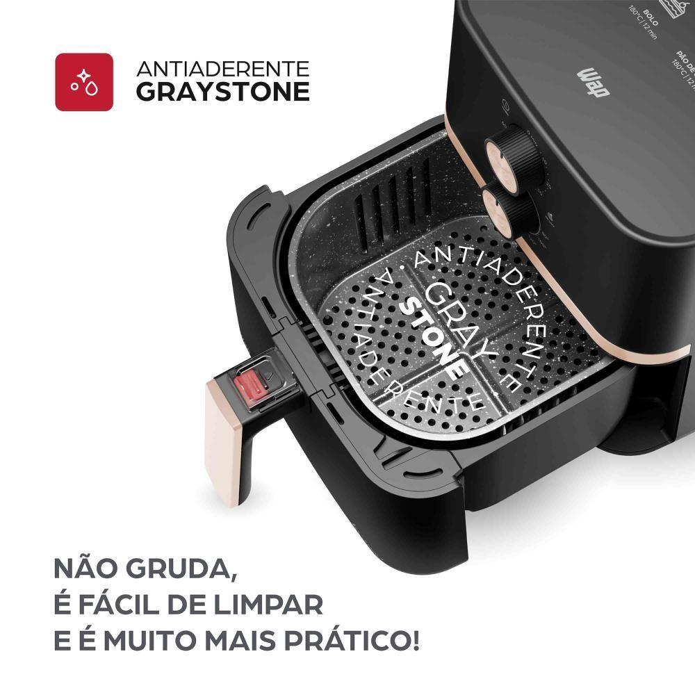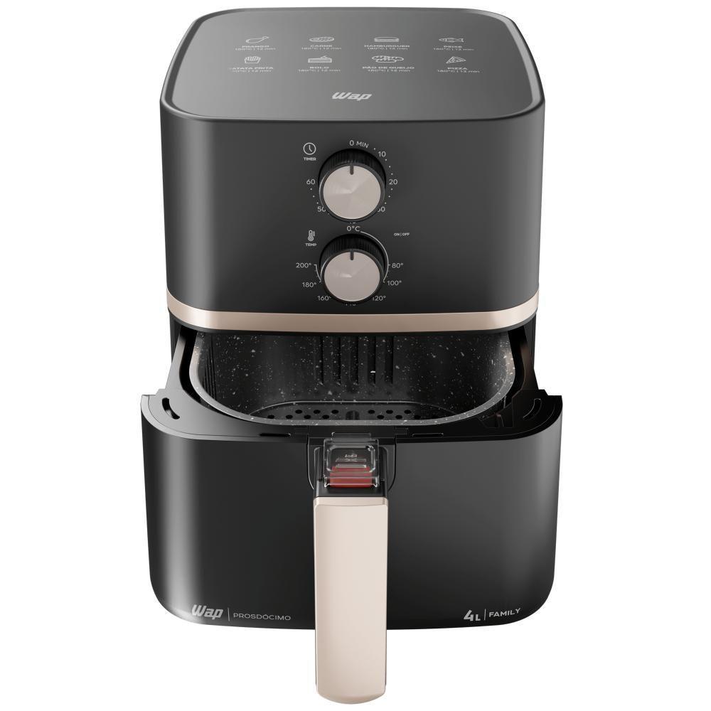 Fritadeira Elétrica WAP Air Fryer Family 4l 110VSua parceira na culinária saudável e prática!A Fritadeira Elétrica WAP Air Fryer Family oferece uma maneira saudável e deliciosa de desfrutar de seus pratos favoritos! Com um design elegante e funcional, esta fritadeira elétrica é a solução ideal para quem busca refeições saborosas sem abrir mão da sua saúde.Com uma capacidade de até 4 litros*, a Air Fryer Family da WAP permite preparar porções generosas para toda a família! Seu cesto removível facilita na hora de retirar e servir os alimentos.A tecnologia de circulação de ar em 360° garante um cozimento uniforme do alimento, deixando-o crocante por fora e macio por dentro, além de eliminar o óleo em excesso, proporcionando pratos mais saudáveis.O destaque fica por conta do duplo revestimento antiaderente GrayStone, que aumenta a durabilidade do cesto, e garante que os alimentos não grudem e, o melhor de tudo, proporciona uma limpeza sem esforço e muito mais tempo para desfrutar da sua culinária com quem você gosta.A praticidade também é evidente em suas funções de tempo e temperatura. O timer de 60 minutos, com um aviso sonoro, possibilita a configuração precisa do tempo de cozimento, permitindo que você realize outras atividades enquanto a refeição é preparada. A faixa de temperatura ajustável, que vai de 80°C a 200°C, oferece controle completo sobre o cozimento, garantindo resultados excelentes para uma variedade de pratos.Imagine as infinitas possibilidades culinárias que a Fritadeira WAP Air Fryer Family proporciona! Desde pães de queijo dourados e irresistíveis até mini-hambúrgueres suculentos, cupcakes perfeitamente assados e coxinhas de frango crocantes, tudo sem a necessidade de óleo.A Fritadeira Elétrica WAP é uma aliada na busca por refeições saborosas. Sua capacidade, facilidade de limpeza, controles precisos de tempo e temperatura, além das infinitas opções culinárias que proporciona, fazem dela um item essencial para qualquer lar que valoriza a qualidade na hora de cozinhar.WAP - Deixa tudo mais fácil!* Capacidade do cesto 3L e capacidade da cuba 4LEspecificações Técnicas:Código WAP: FW009531 Luz indicadora de funcionamento: SimCódigo EAN: 7899831312702Capacidade total: 4LTemperatura: 80-200 °CAcessórios: Cesto removível com revestimento antiaderente GreyStonePeso bruto: 3,92 kgComprimento do cabo elétrico: 0,8 mTipos de alimentos que comporta: Prepara petiscos, massas, carnes, pastéis, pão de queijo, churros, peixes, vegetais entre outrosDimensões do produto (C x L x A): 24,5 x 33,6 x 28,8 cmTipo de tomada (amperes): 110V (20A)Timer: 0-60 minPeso líquido: 3,9 kgDimensões da caixa (C x L x A): 28,6 x 36,1 x 33,2 cmCor: Preto e cinzaRevestimento antiaderente: Sim (GreyStone)Potência: 1500WAção do produto: Assar, cozinhar, gratinar e fritar seus alimentosMaterial: Polímeros e MetaisDescrição personalizada: Fritadeira Elétrica WAP Air fry Family 4.Dimensões do Cesto (C x L x A): 18,5 x 15,5 x 10,7 cmFrequência: 60 HzDesligamento automático:: SimCapacidade útil: 3LVoltagem: 110V