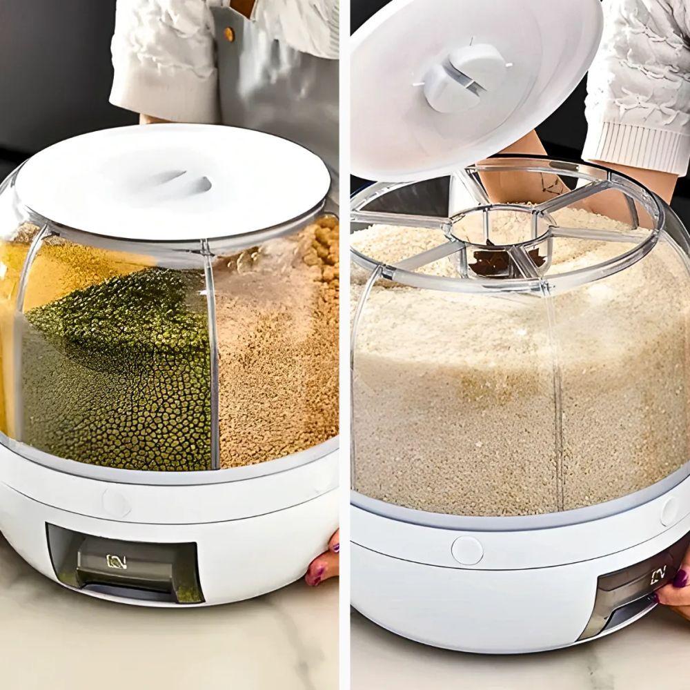 Dispenser De Alimentos E Grãos Giratório Com 6 Divisões
