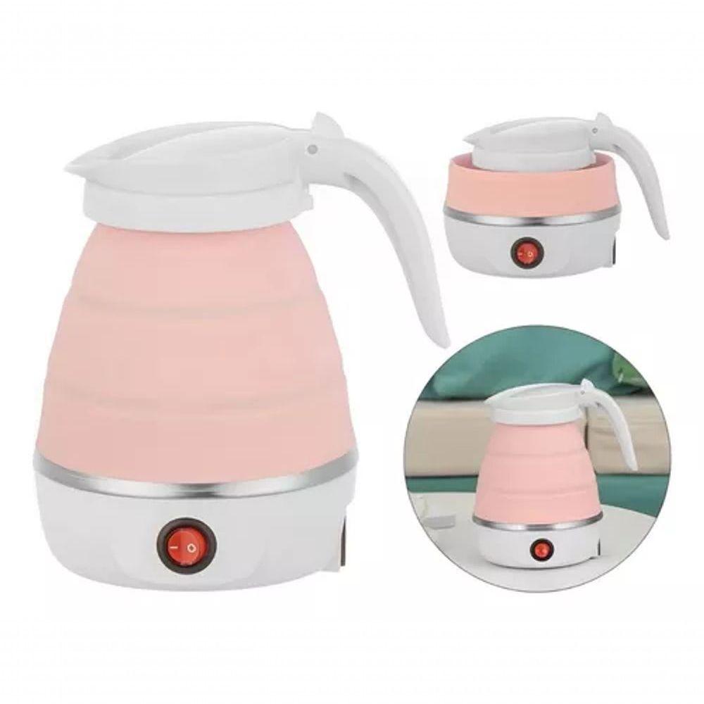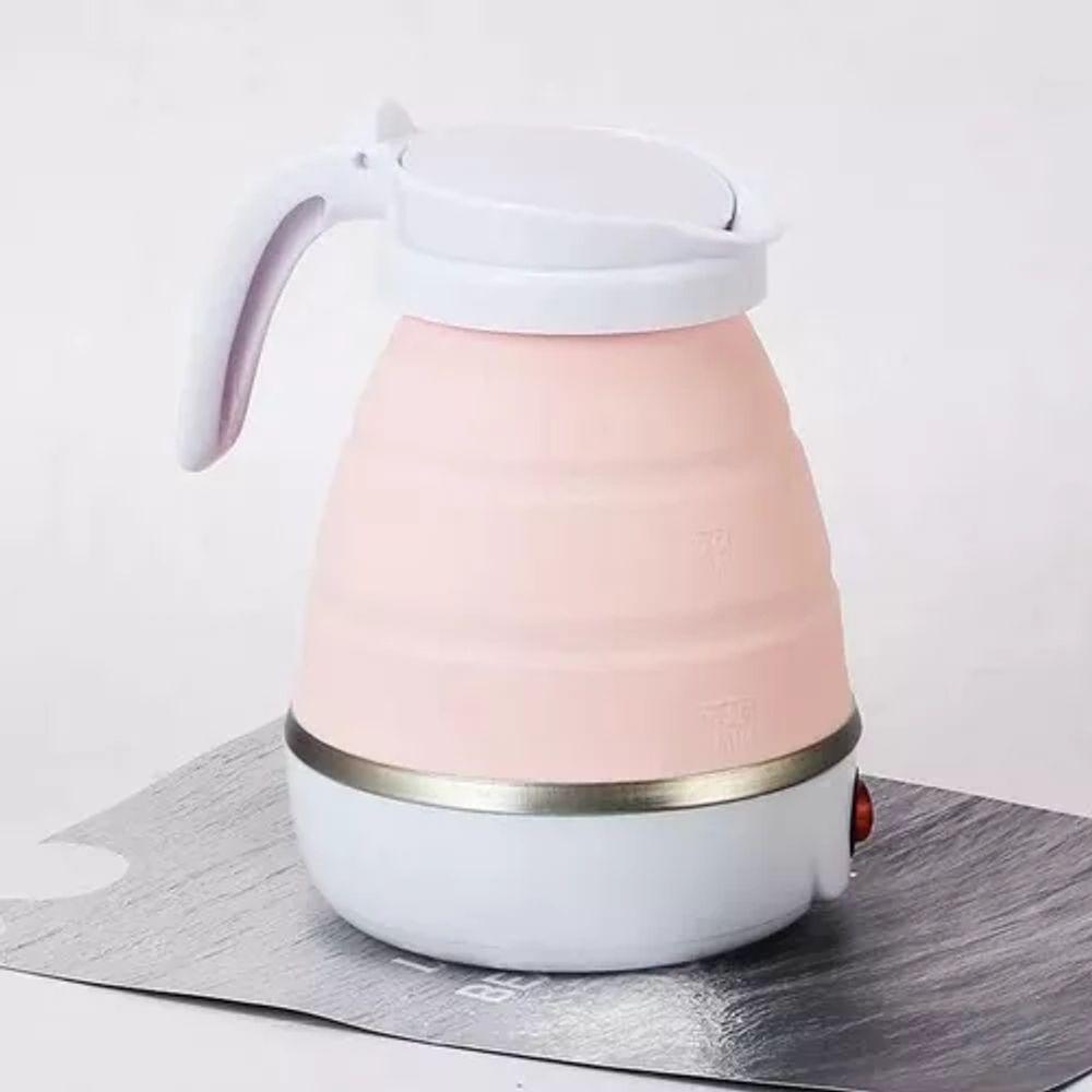 Chaleira Elétrica Dobrável Portátil 600ml – Silicone + Aço Inox, Compacta E Ideal Para Viagem E Camping 110V - Rosa