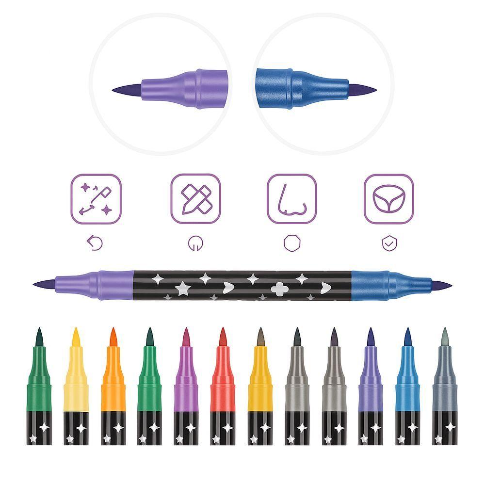 Kit 24 Canetas Dupla Ponta Glitter – 48 Cores Brilhantes Para Lettering, Arte E AnotaçõesCanetas para Colorir com Glitter 2 Pontas – 48 CoresDeixe sua criatividade brilhar com o kit de Canetas para Colorir com Glitter de 2 Pontas. Um conjunto completo com 48 cores vibrantes e cintilantes, perfeito para dar vida a desenhos, anotações e projetos artísticos com muito mais estilo.Características:Duas pontas em cada caneta: ponta fina para contornos e detalhes precisos, ponta grossa para preenchimentos e traços destacados48 cores exclusivas com efeito cintilante e acabamento glitterTinta de alta qualidade, com escrita suave e secagem rápidaEstojo prático para organização e transporteBenefícios:Perfeito para colorir, desenhar, fazer lettering, scrapbooking e bullet journalCores vivas e brilhantes que realçam qualquer criaçãoIndicado para uso escolar, artístico ou decorativoEstimula a criatividade e a expressão artística em crianças, jovens e adultosConteúdo do Pacote:1 estojo com 24 canetas de duas pontas, totalizando 48 cores com glitter