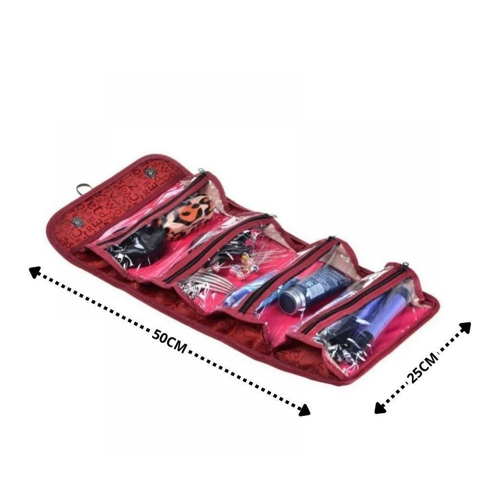 Frasqueira Necessaire Dobrável Com 4 Divisórias Organização E Praticidade Para Viagem E Dia A Dia - Vinho E Rosa