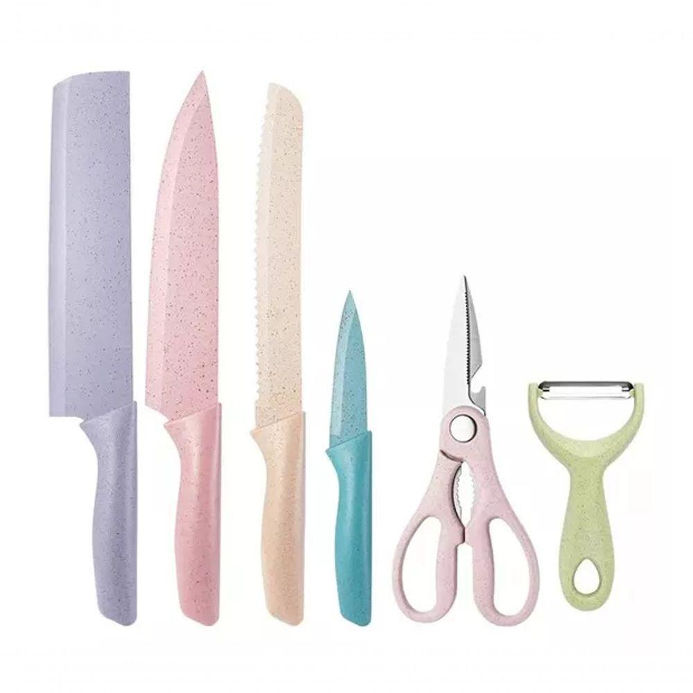 Kit Facas Gourmet 6 Peças Coloridas – Aço Inox Com Tesoura E Descascador