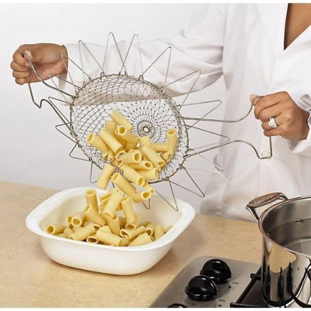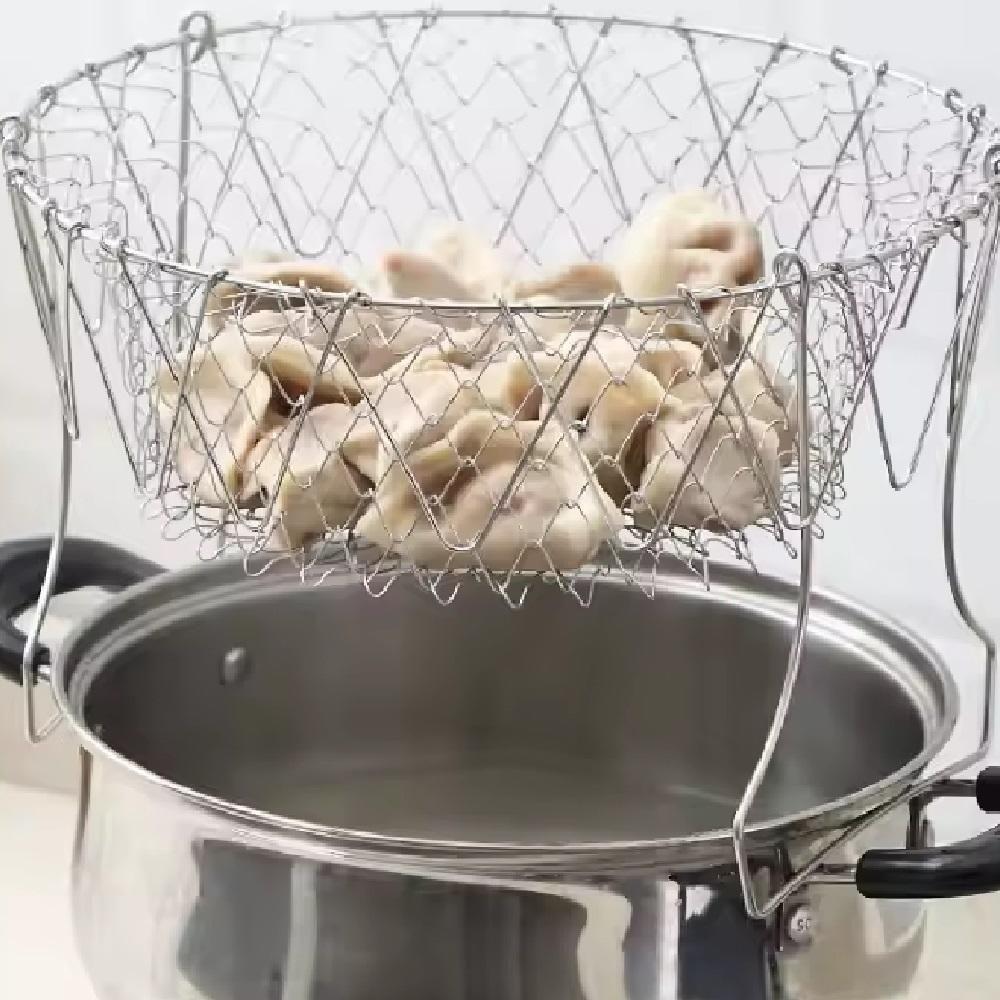 Cesto Multiuso Inox 12 Em 1 Para Frituras Cozimento A Vapor Escorredor E Fruteira Dobrável