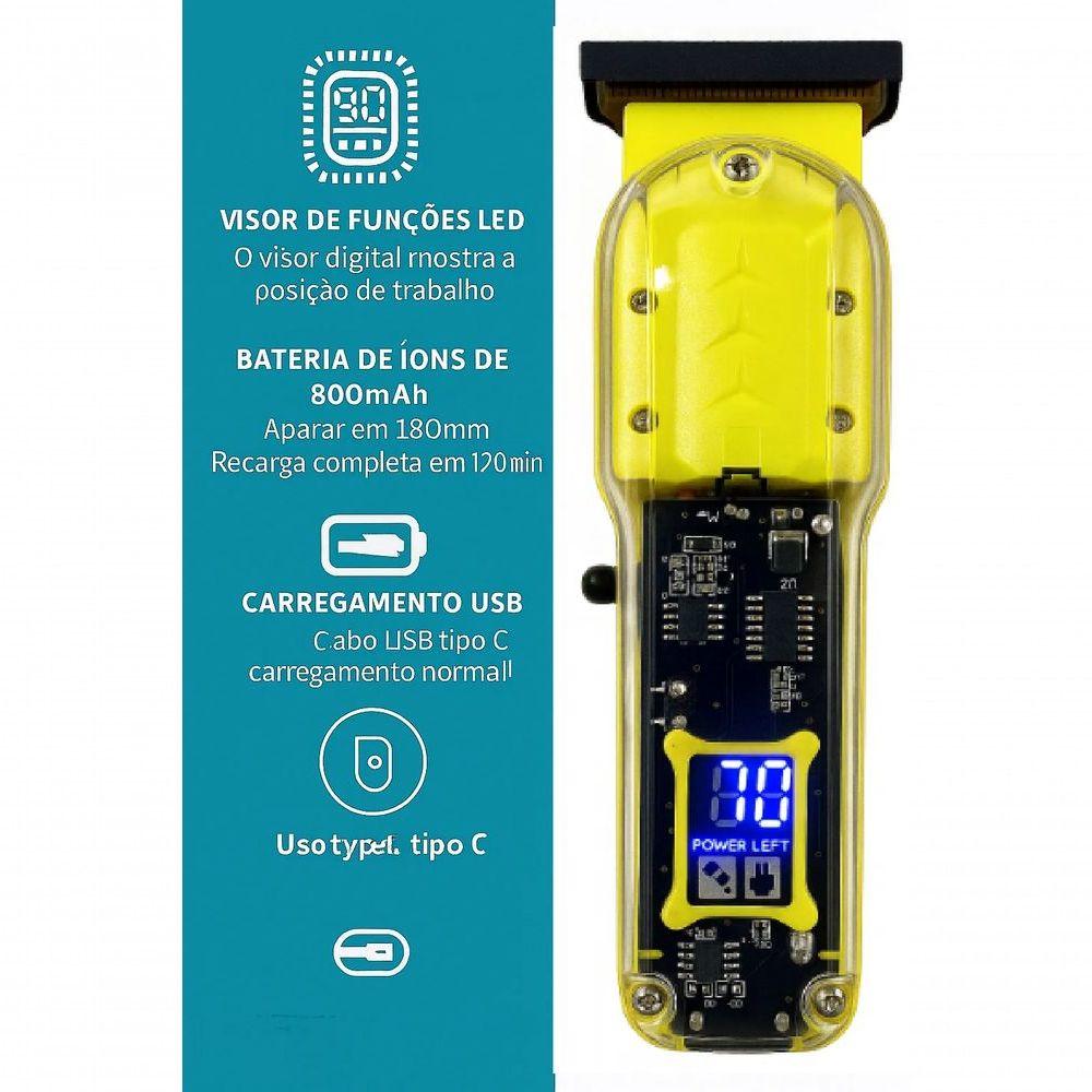 Máquina De Cortar Cabelo Transparente Amarela Com Visor Digital – Precisão, Potência E Estilo Moderno - Bivolt