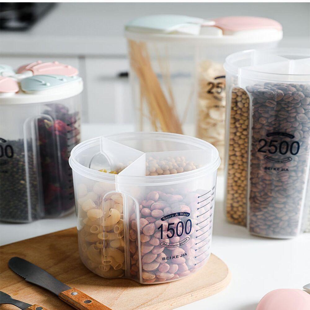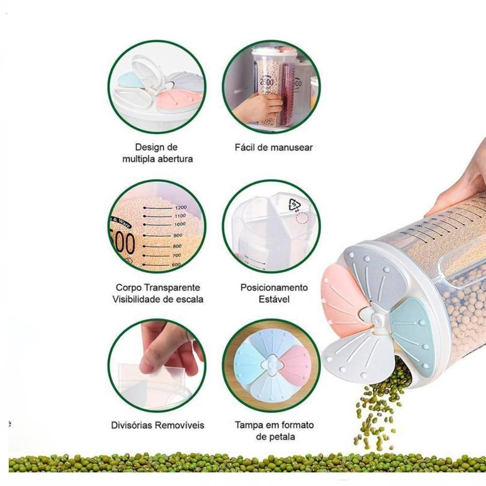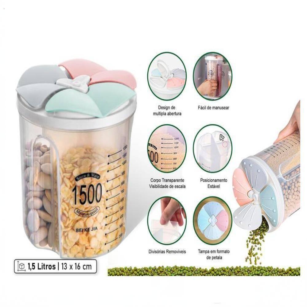 Pote Triplo Porta Mantimentos 3 Em 1 Com Divisórias Dispenser Medidor Para Alimentos E Sabão Em Pó