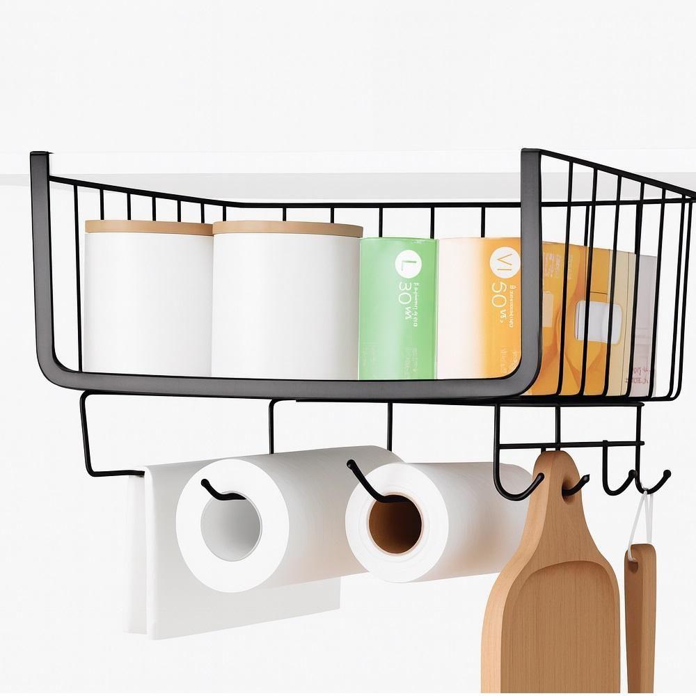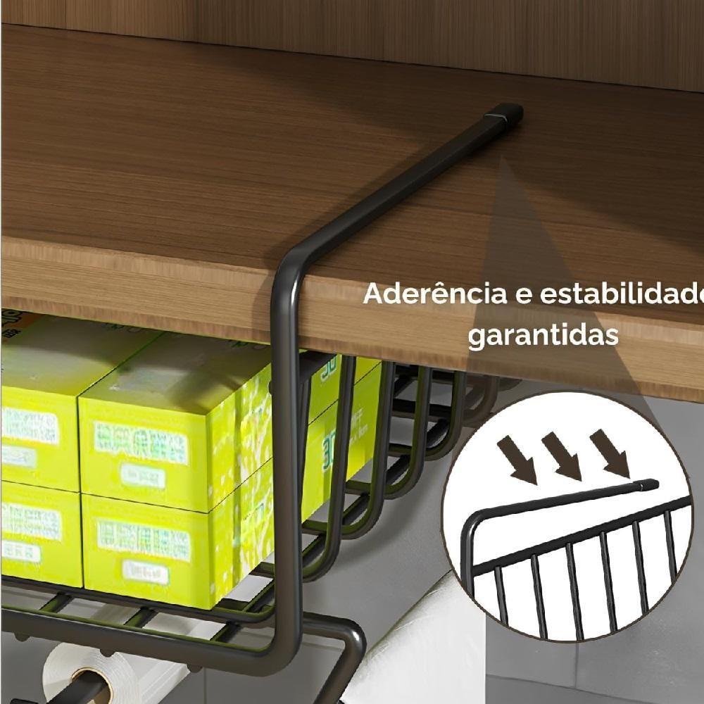 Cesto Organizador Aramado Suspenso Com Prateleira Deslizante Suporte Porta Armário Para Louças E Utensílios**Cesto Organizador Suspenso Mais Espaço e Praticidade**Transforme áreas vazias embaixo de prateleiras e dentro de armários em locais úteis para guardar louças, utensílios e mantimentos. O design aramado permite visualizar tudo facilmente, enquanto a estrutura de aço galvanizado garante resistência à ferrugem.**Destaques:**- **Instalação sem furos** basta encaixar o cesto sobre a prateleira e deslizar; não requer ferramentas.- **Organização prática** ideal para pratos, potes, tábuas, talheres, panos de prato, rolos de papel toalha e muito mais.- **Durabilidade** confeccionado em aço resistente com acabamento galvanizado, suporta o peso das louças sem deformar.- **Versatilidade** perfeito para cozinha, lavanderia, escritório ou banheiro; use para organizar produtos de limpeza, acessórios, correspondências, etc.- **Economia de espaço** aproveite o espaço livre sob bancadas e prateleiras para criar um compartimento adicional.Dimensões aproximadas: consulte a embalagem para medidas e capacidade.