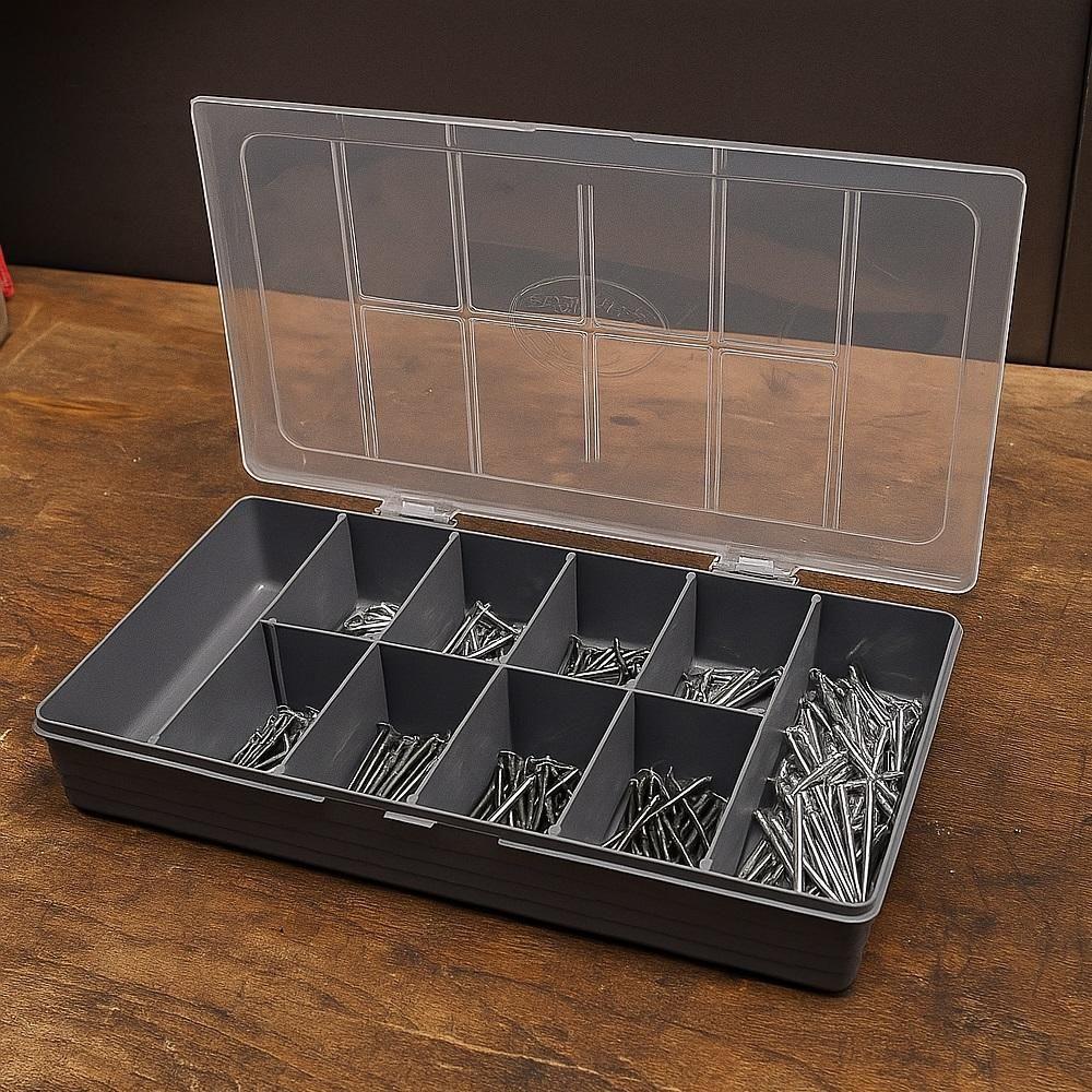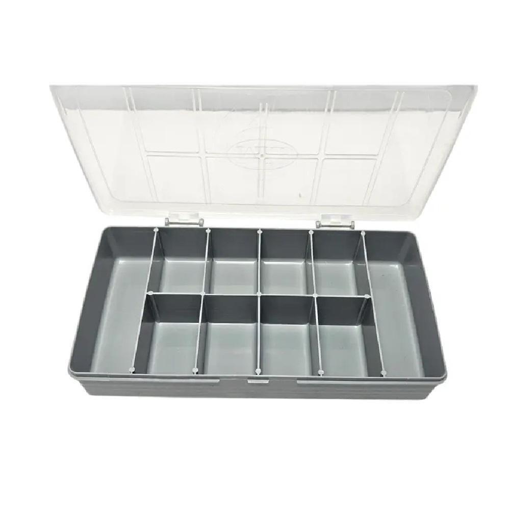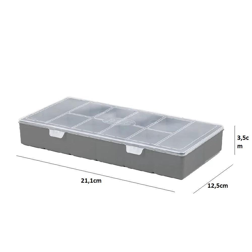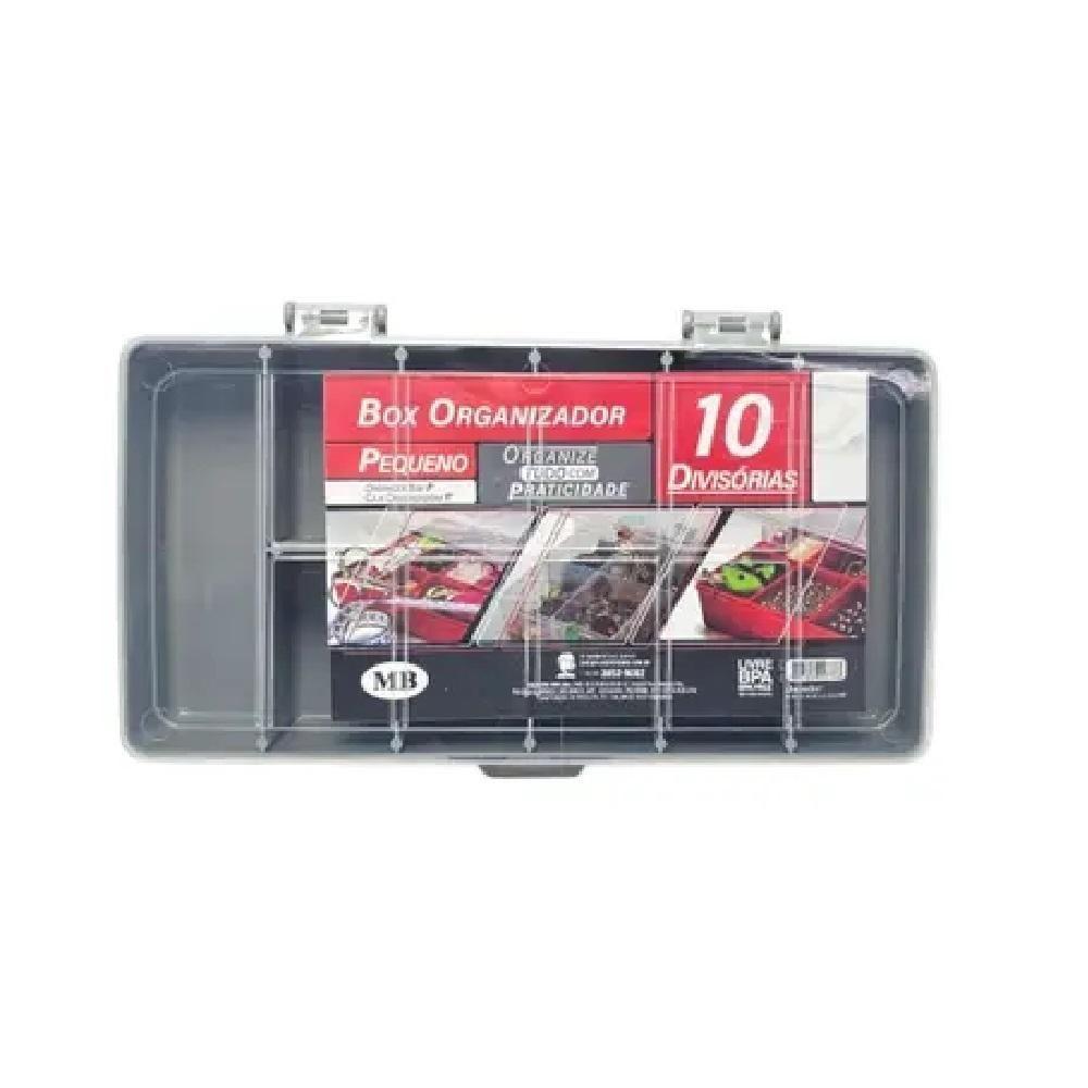 Caixa Box Organizadora 10 Divisórias Com Tampa E Trava Para Bijuterias, Costura, E Pequenos ItensCaixa Box Organizadora 10 Divisórias multiuso com Tampa e Trava para Bijuterias, Costura, Ferramentas e Pequenos ItensCaixa Organizadora com Divisórias MB – Praticidade, Inteligência e DurabilidadeA Caixa Organizadora com Divisórias MB é a solução perfeita para manter pequenos itens sempre bem armazenados, protegidos e fáceis de encontrar. Com corpo transparente, divisórias internas e tampa com trava segura, ela oferece organização eficiente e visualização rápida do conteúdo, ideal para uso doméstico, profissional ou escolar.Seu design compacto e empilhável otimiza espaços em gavetas, prateleiras e armários, enquanto o material plástico resistente garante longa durabilidade, mesmo com uso diário. Multiuso e versátil, é ideal para guardar bijuterias, linhas de costura, parafusos, iscas de pesca, medicamentos, acessórios eletrônicos e muito mais.Benefícios do ProdutoDivisórias internas: mantém cada item separado e organizadoTampa com trava firme: evita abertura acidental e protege contra poeiraCorpo transparente: facilita a visualização do conteúdoMaterial resistente e leve: perfeito para transporte e uso diárioDesign empilhável: otimiza espaço e facilita a organizaçãoMultiuso: ideal para bijuteria, costura, pesca, ferramentas e pequenos objetosLivre de BPA: segura, higiênica e atóxicaEspecificações TécnicasMaterial: Plástico resistente de alta qualidadeDivisórias: 10 compartimentosFormato: Retangular com cantos arredondadosMedidas: 3,5 cm (A) × 12,5 cm (C) × 21,1 cm (L)Cor: TransparenteConteúdo da Embalagem1 Caixa Organizadora MB com 10 DivisóriasOrganize-se com mais praticidade, durabilidade e estilo!