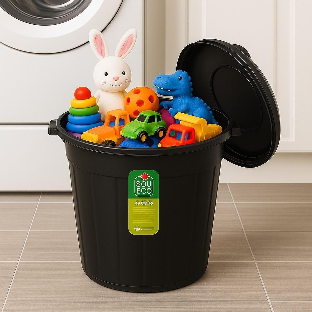 Lixeira Gigante Multiuso 61 Litros Com Tampa Para Coleta Seletiva, Organização - Preto